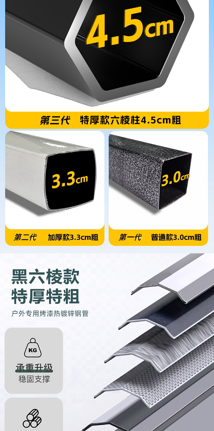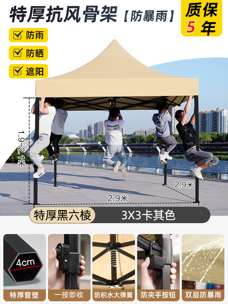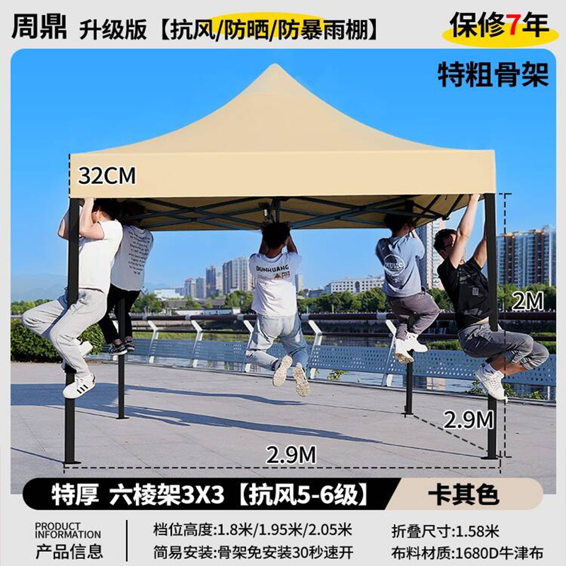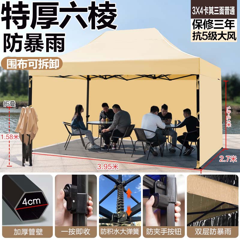 • 3X 4.5m 두꺼운 육각 프레임 카키 [주로 추천 무거운 28kg 5년 보증]