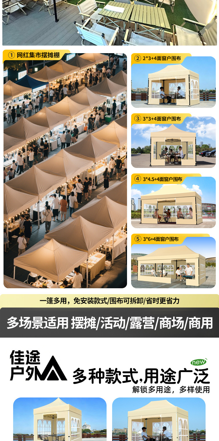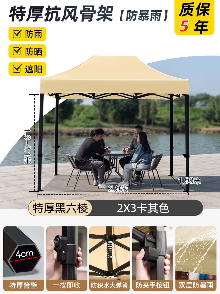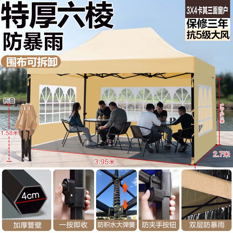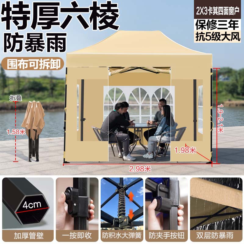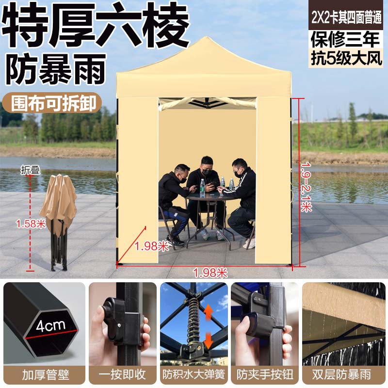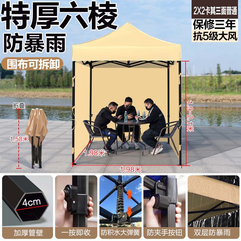 • 매우 두꺼운 검정색 육각형 2x2+3면 천 창 모델 카키색 [비 및 강한 바람 방지 + 따뜻하고 탈착 가능 + 다양한 색상 사용 가능]