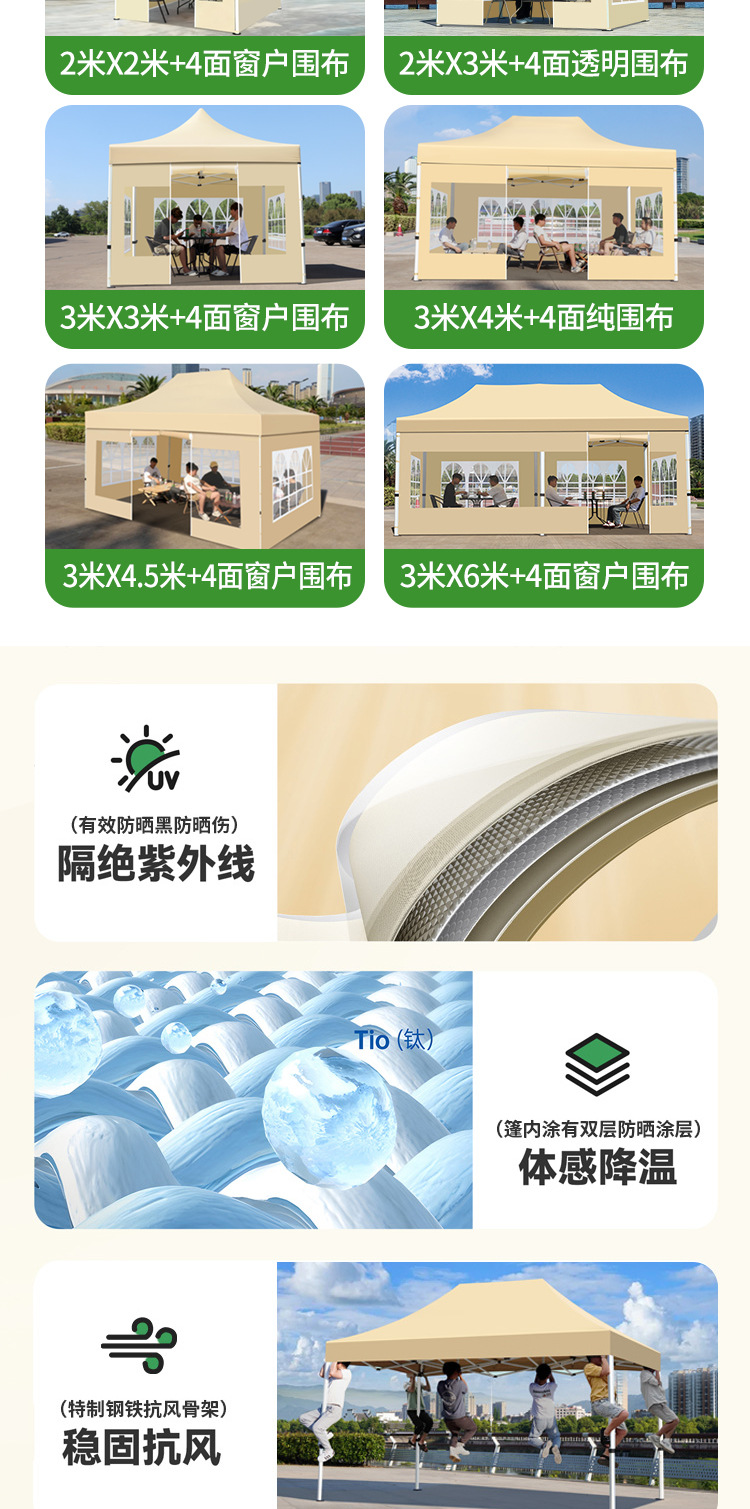 • 매우 두꺼운 검정색 육각형 3x3+4면 천 창 모델, 카키색 [비 및 강한 바람 방지 + 따뜻하고 탈착 가능 + 다양한 색상 사용 가능]