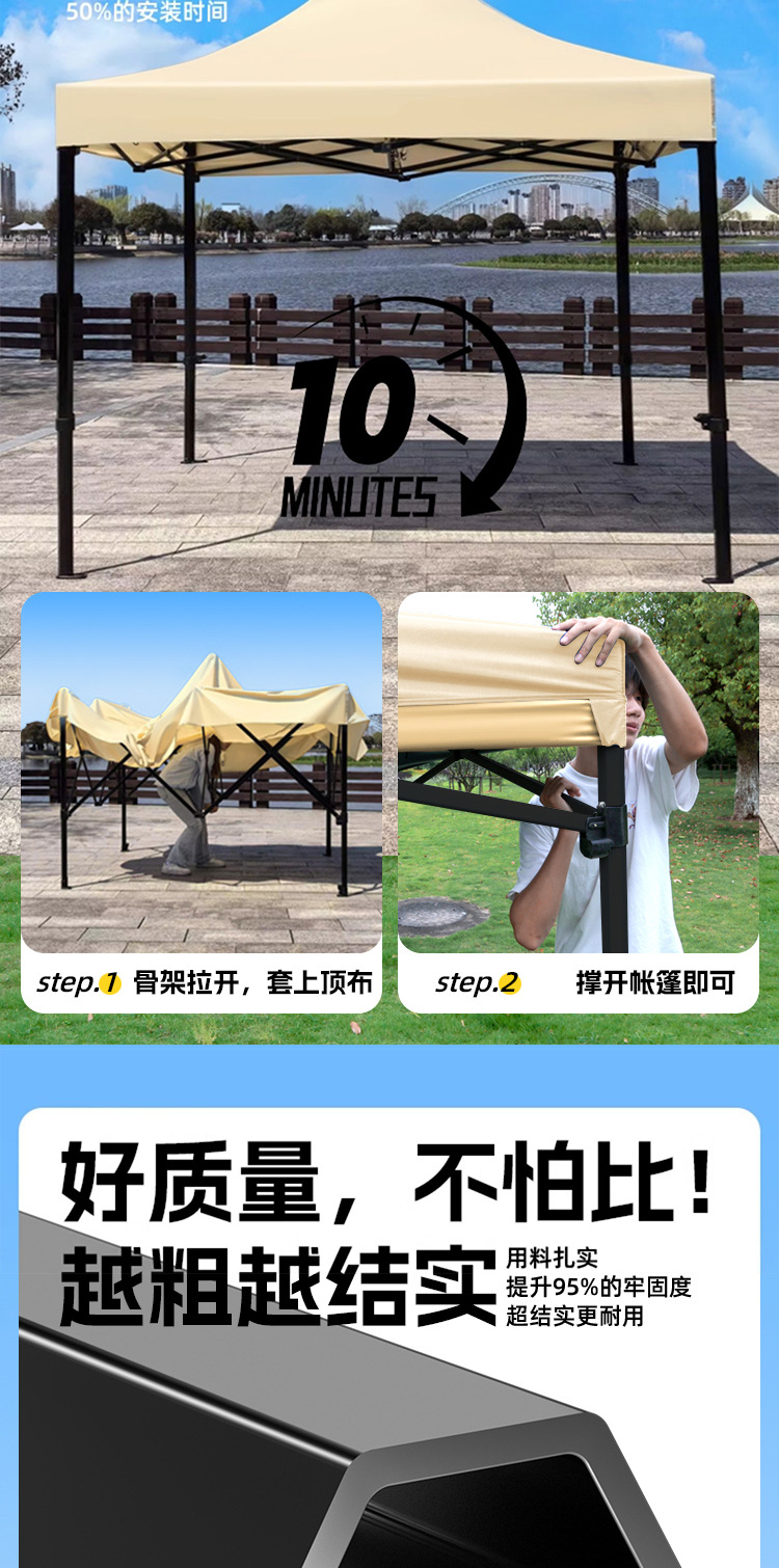 • 2X 2m 두꺼운 육각형 프레임 카키 [두꺼운 무게 17kg 5년 보증]