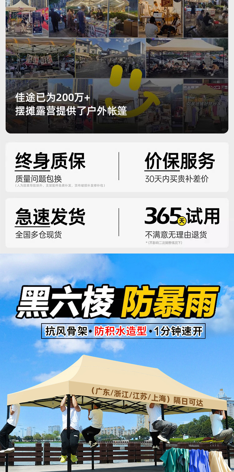 • 매우 두꺼운 검정색 육각형 3x6+3면 천 창 모델 카키색 [비 및 강한 바람 방지 + 따뜻하고 탈착 가능 + 다양한 색상 사용 가능]
