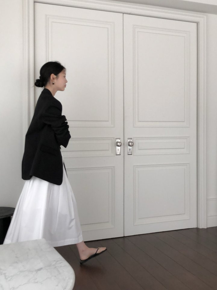한국 세련된 봄 새로운 프랑스 스타일 간단한 우아한 포켓 높은 허리 큰 스윙 원피스 중간 길이스토어 가기