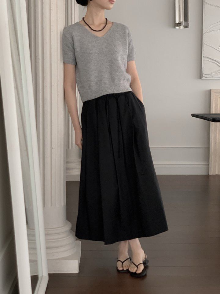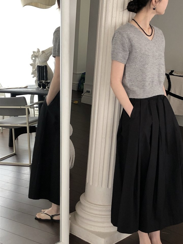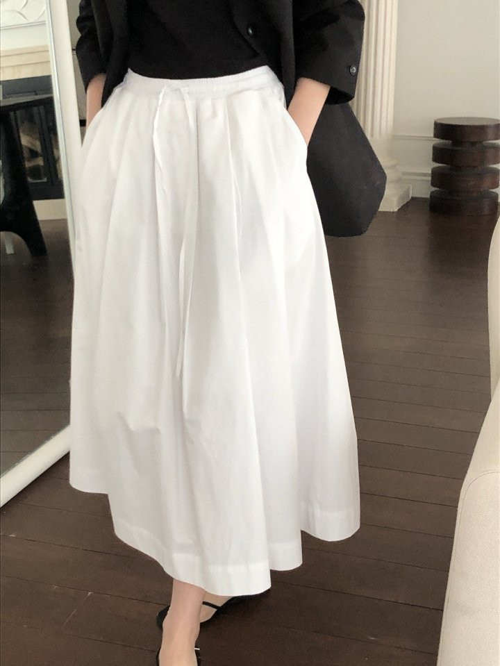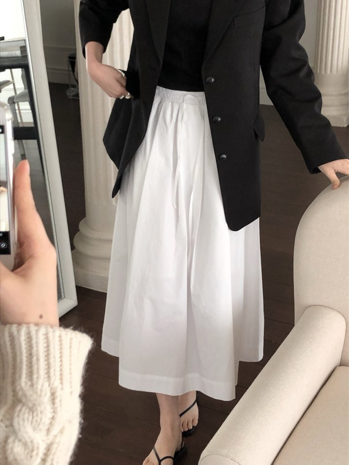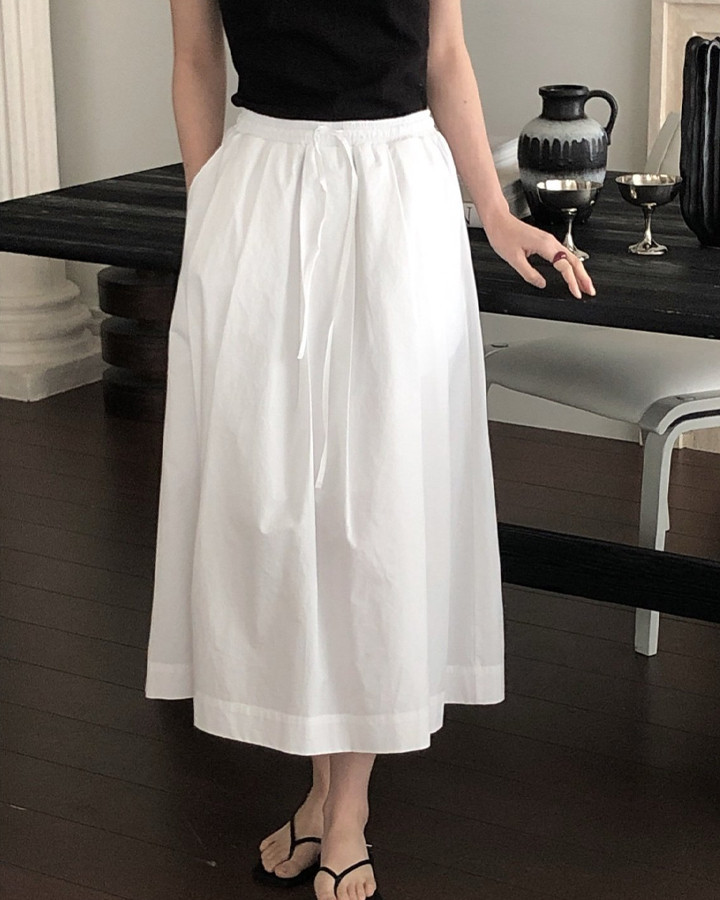 한국 세련된 봄 새로운 프랑스 스타일 간단한 우아한 포켓 높은 허리 큰 스윙 원피스 중간 길이