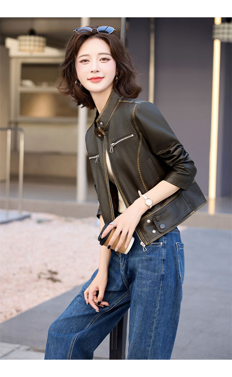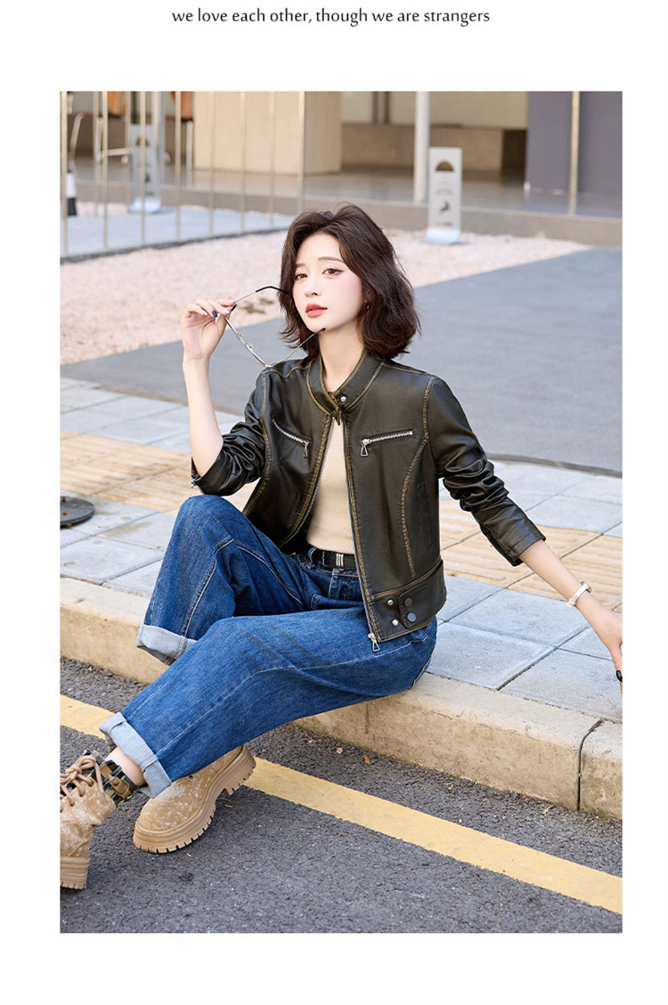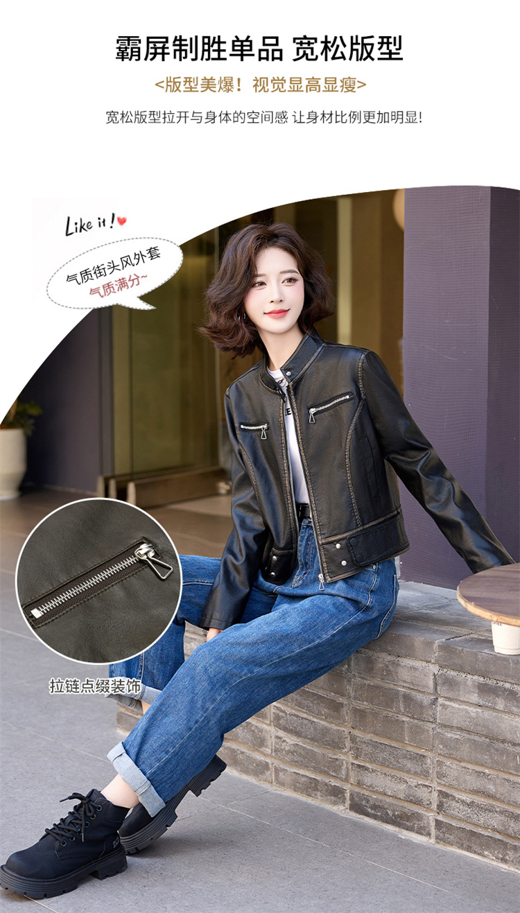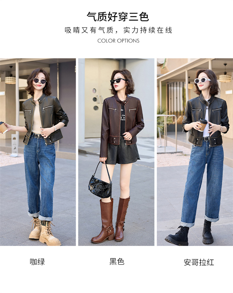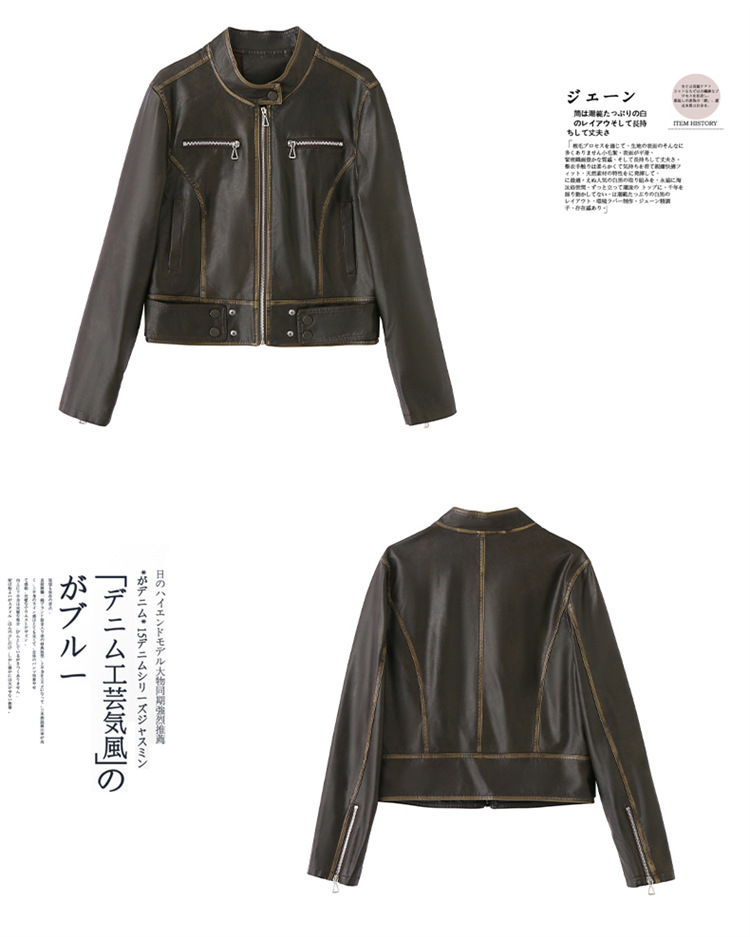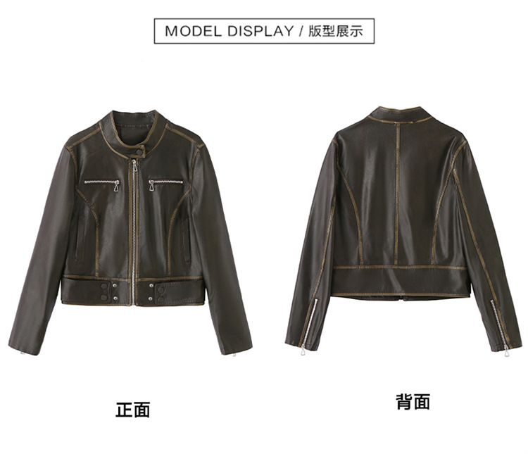 진짜 가죽 여성 짧은 봄과 가을 2025 새로운 복고풍 한국 스타일 둥근 목 양가죽 자켓 코트스토어 가기