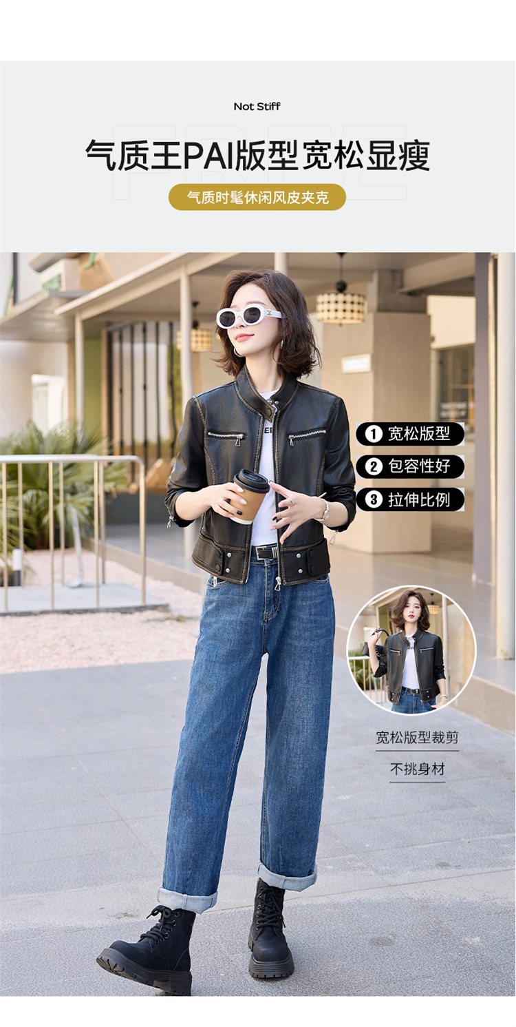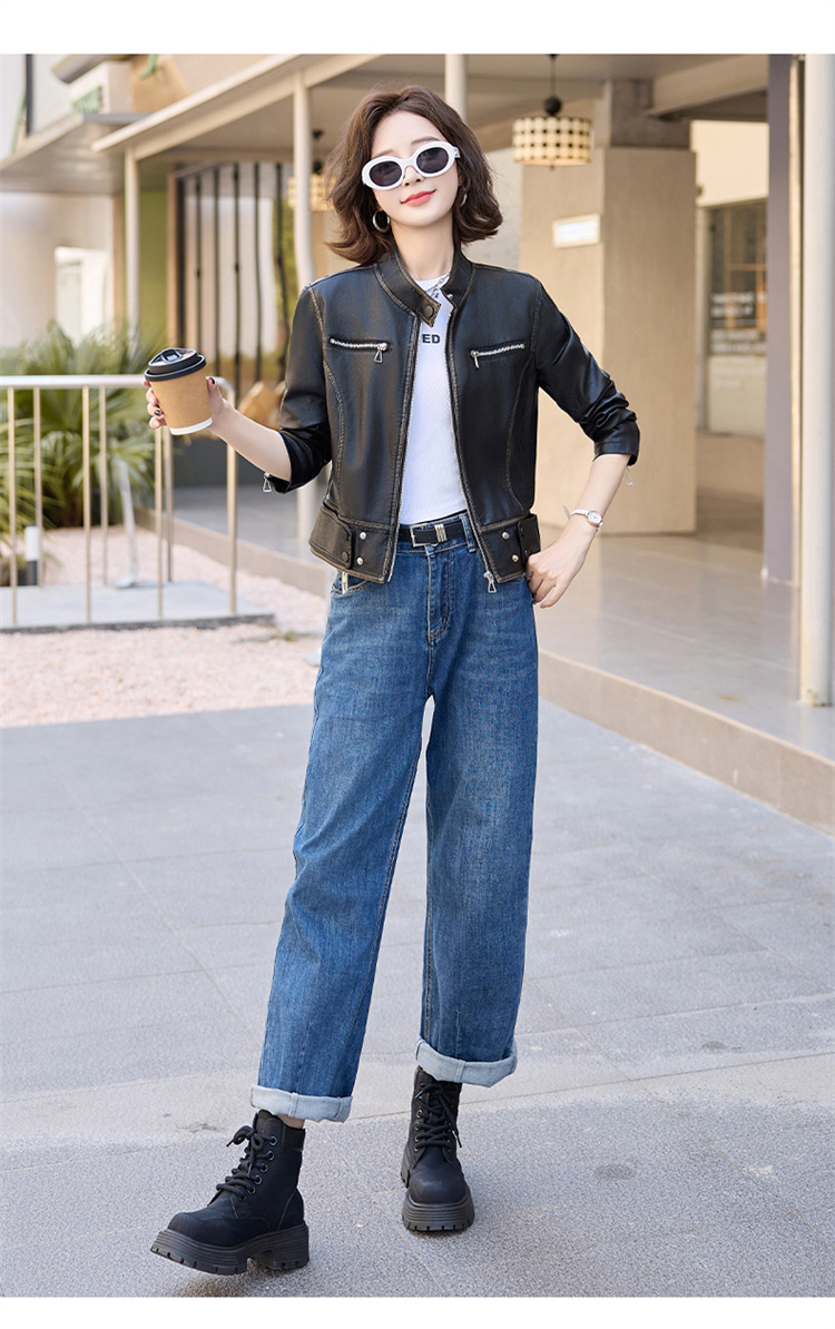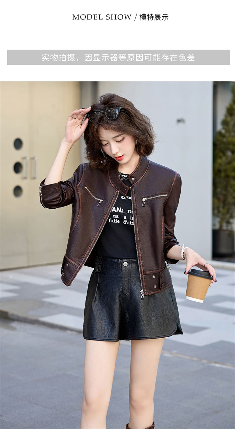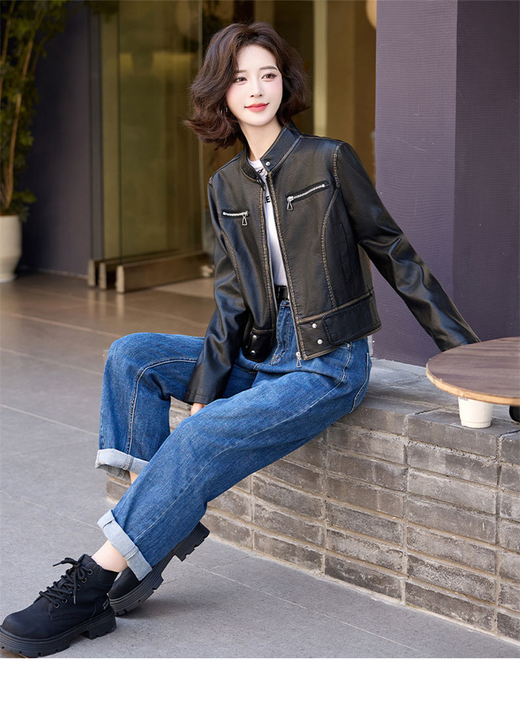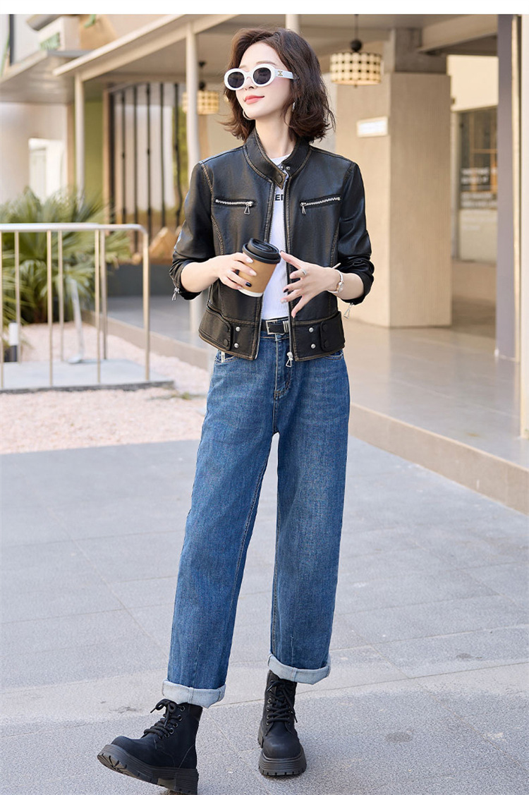 진짜 가죽 여성 짧은 봄과 가을 2025 새로운 복고풍 한국 스타일 둥근 목 양가죽 자켓 코트스토어 가기