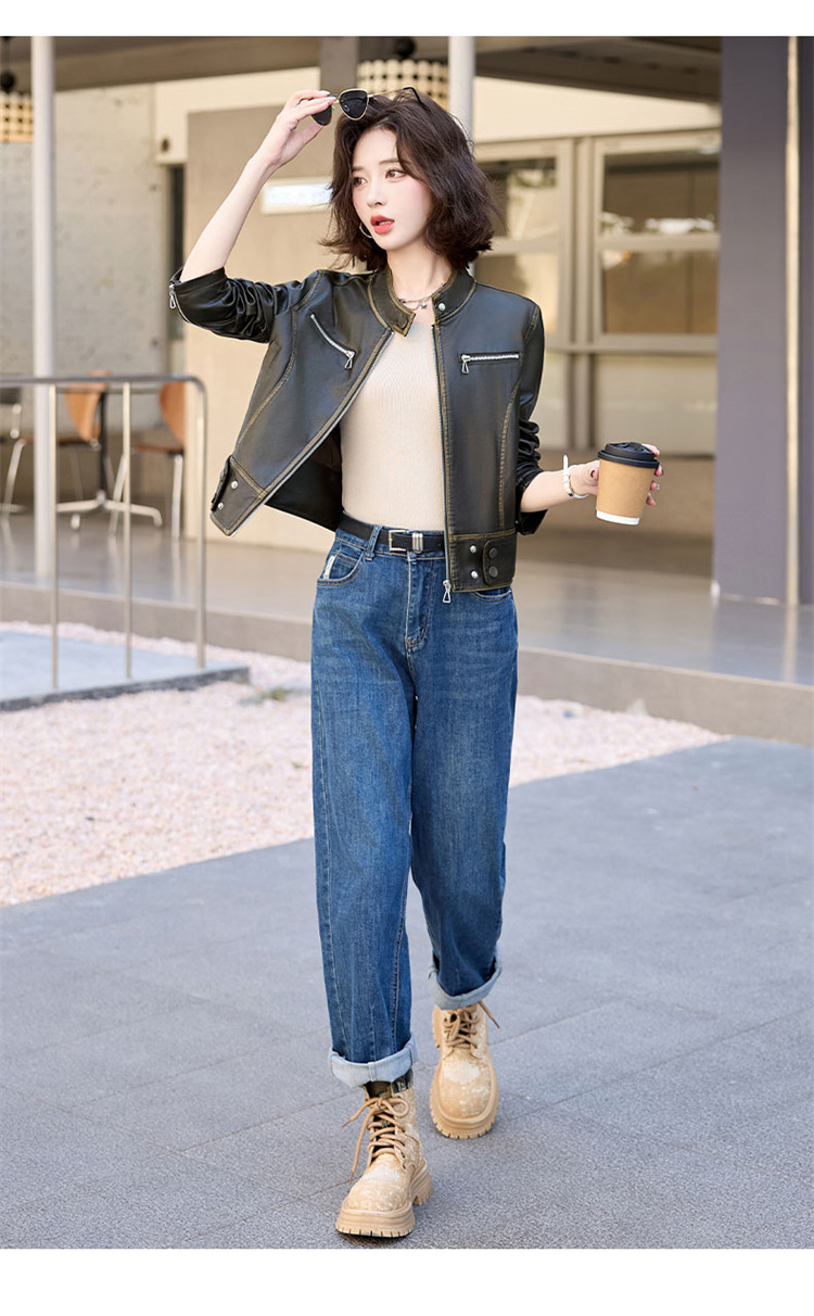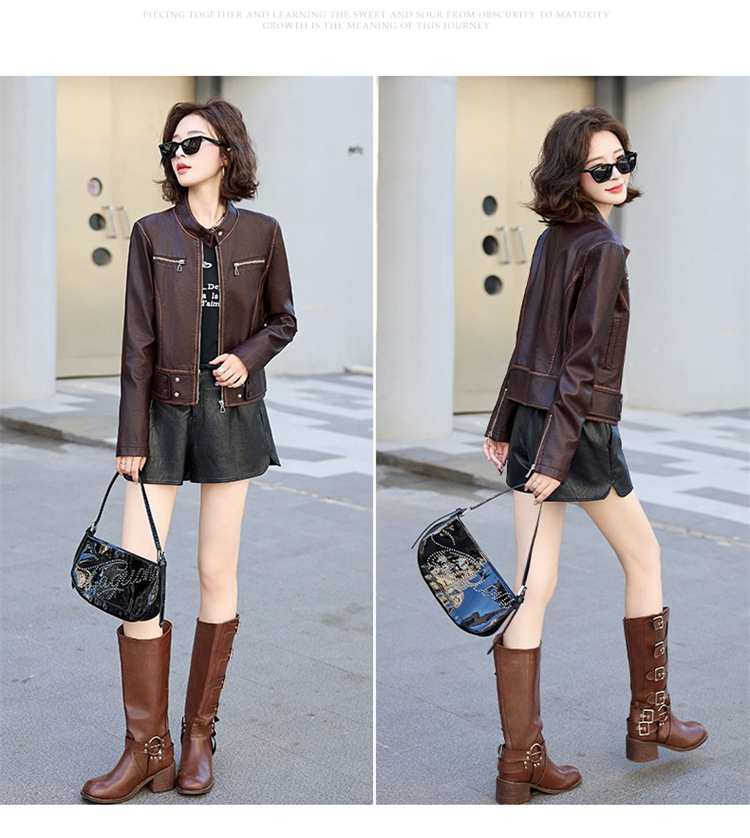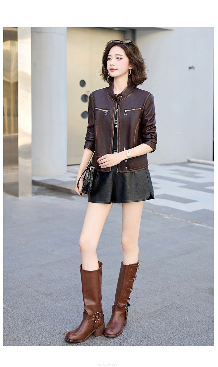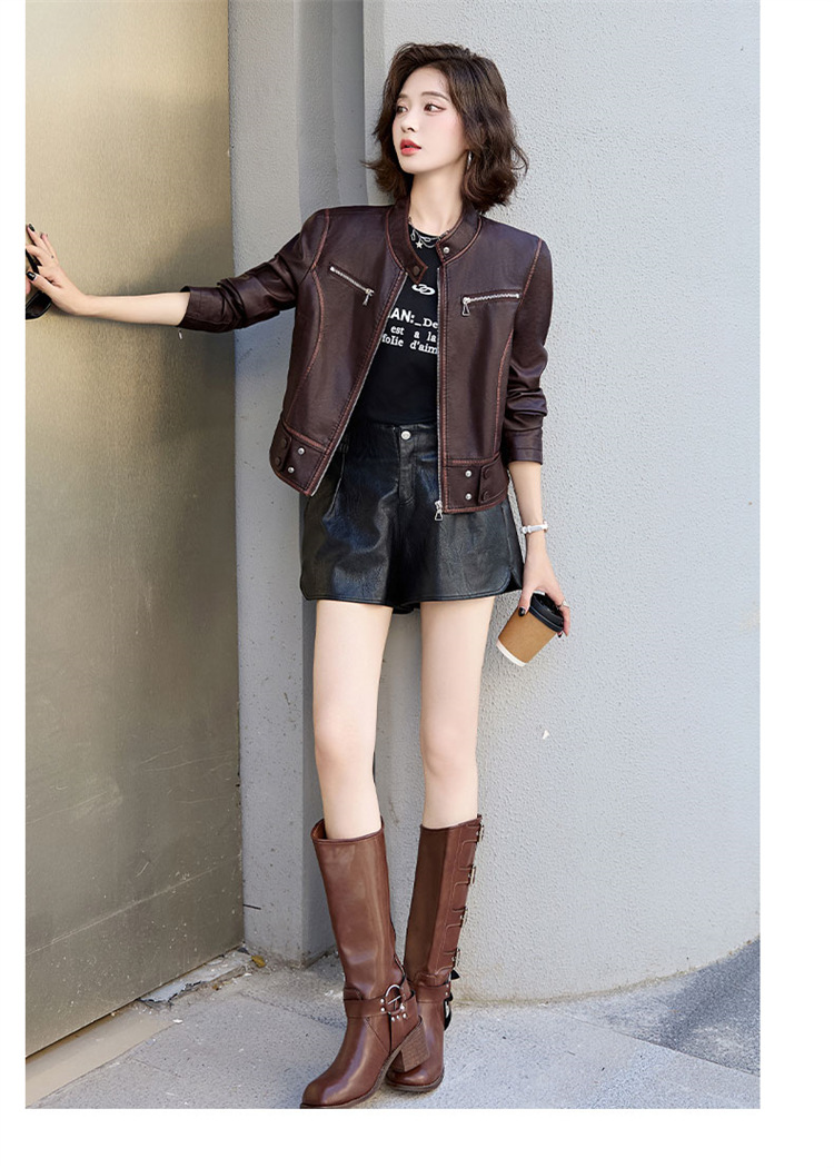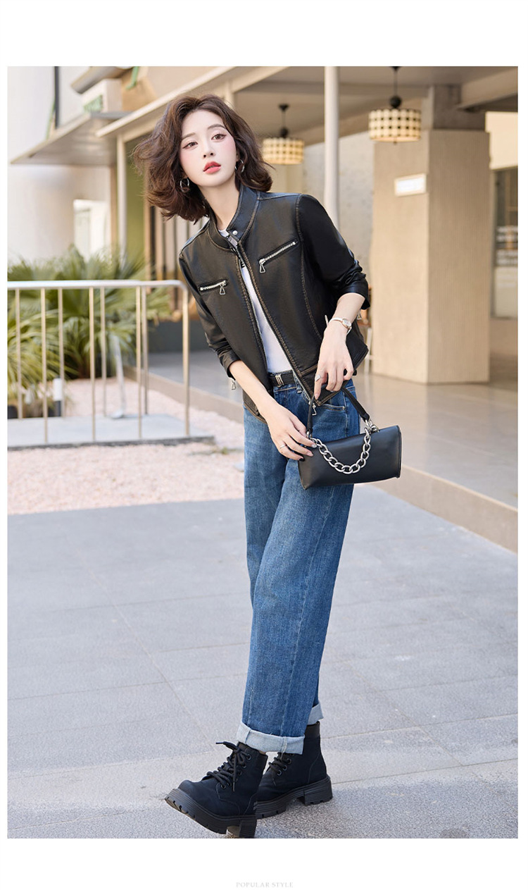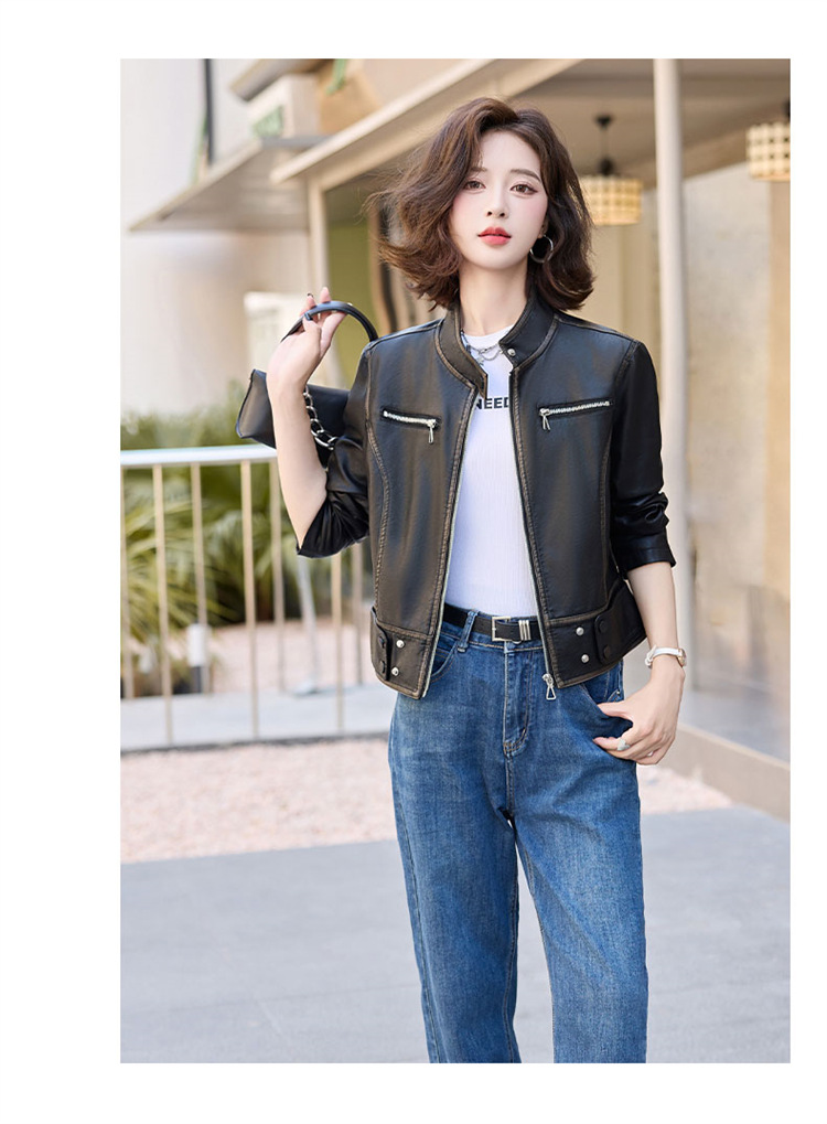 진짜 가죽 여성 짧은 봄과 가을 2025 새로운 복고풍 한국 스타일 둥근 목 양가죽 자켓 코트스토어 가기