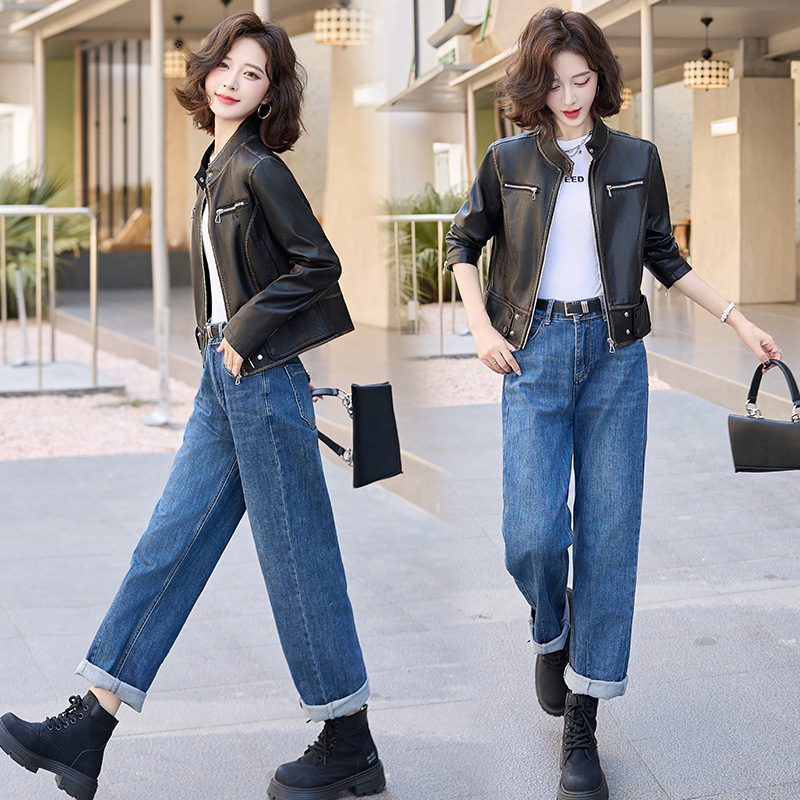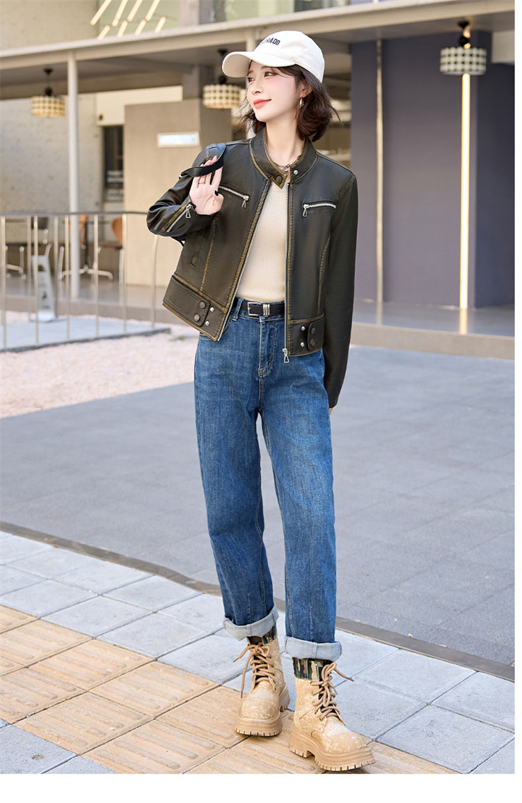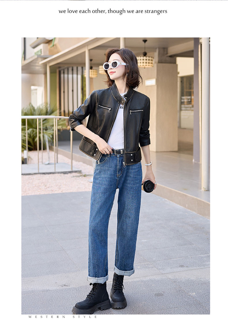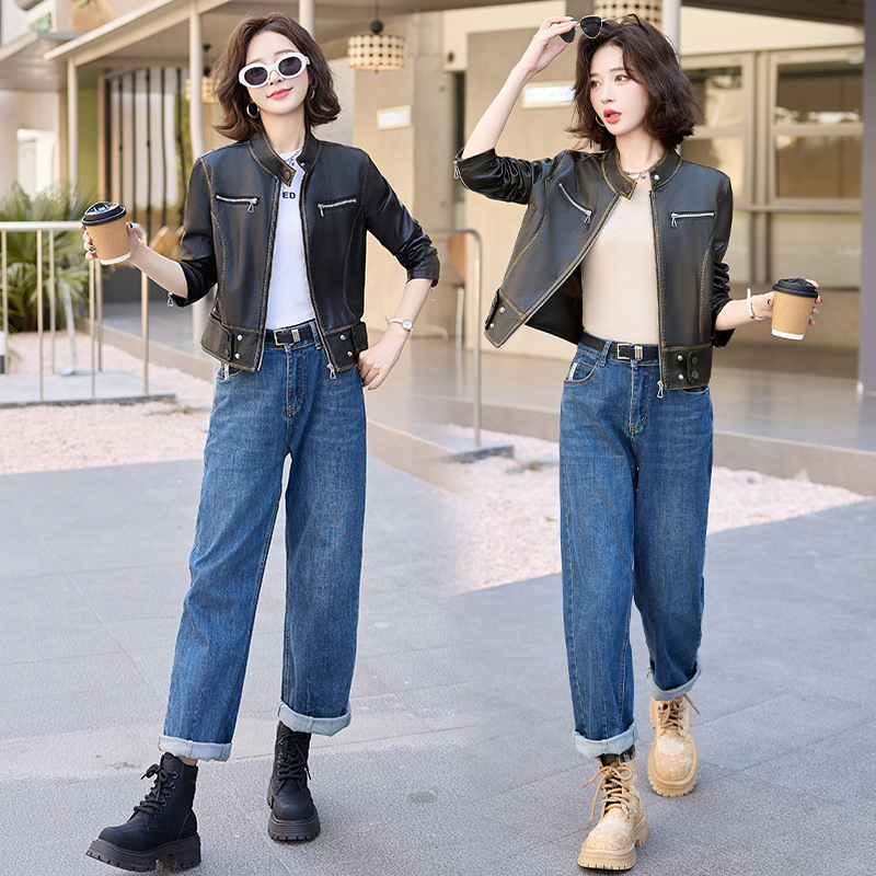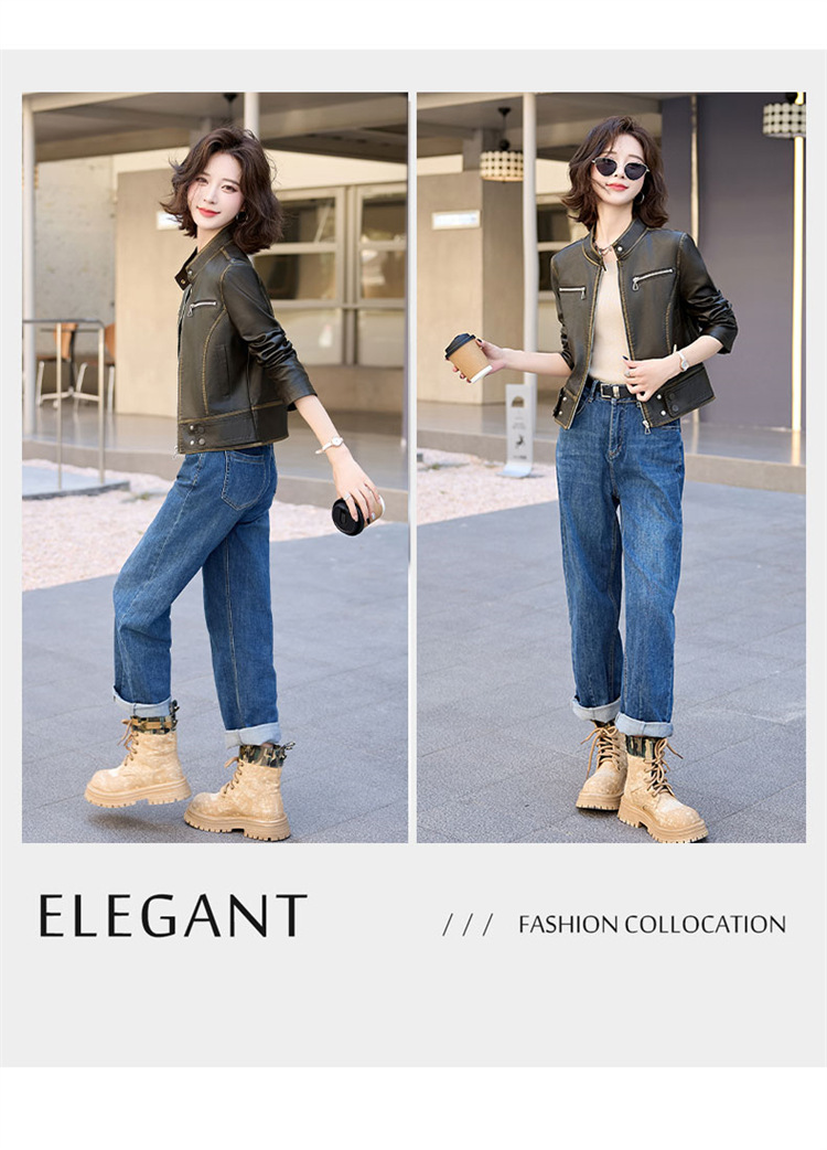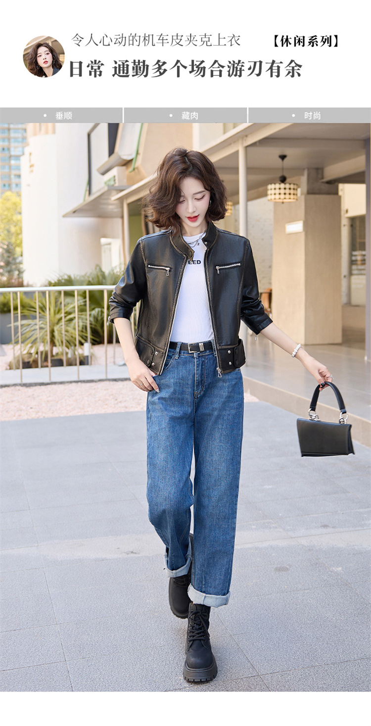 진짜 가죽 여성 짧은 봄과 가을 2025 새로운 복고풍 한국 스타일 둥근 목 양가죽 자켓 코트스토어 가기