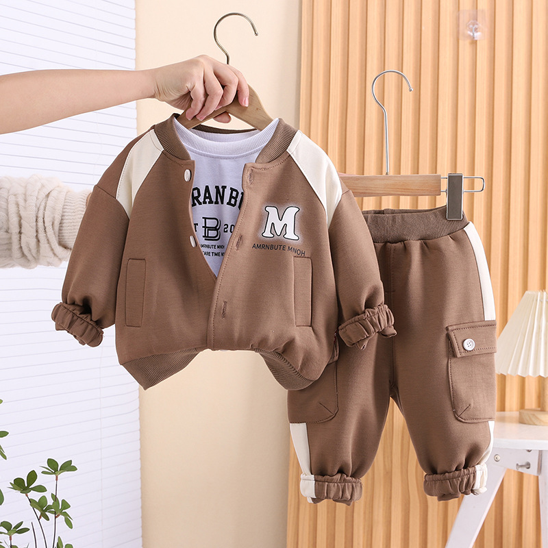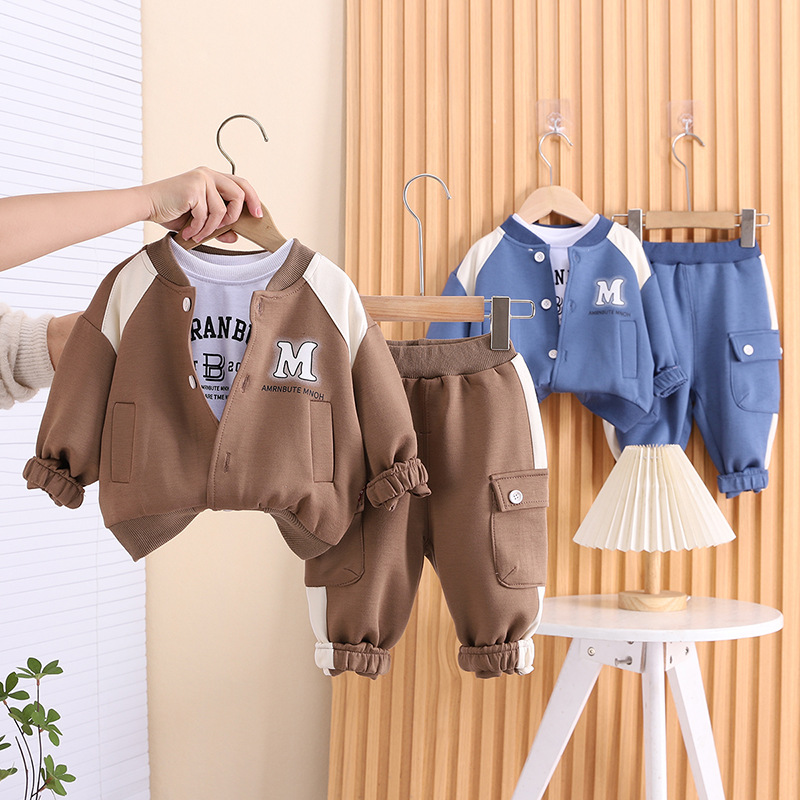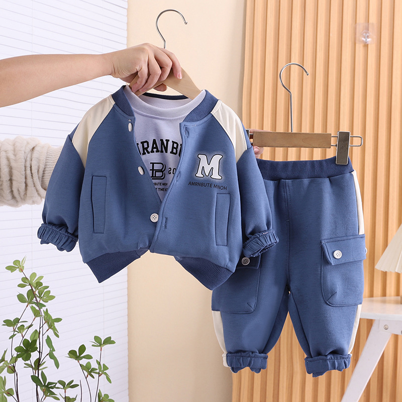 소년 코트 어린이 세트 아기 2025 봄 새 야구 유니폼 3 피스 봄과 가을 물결