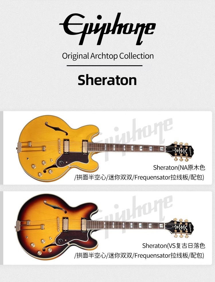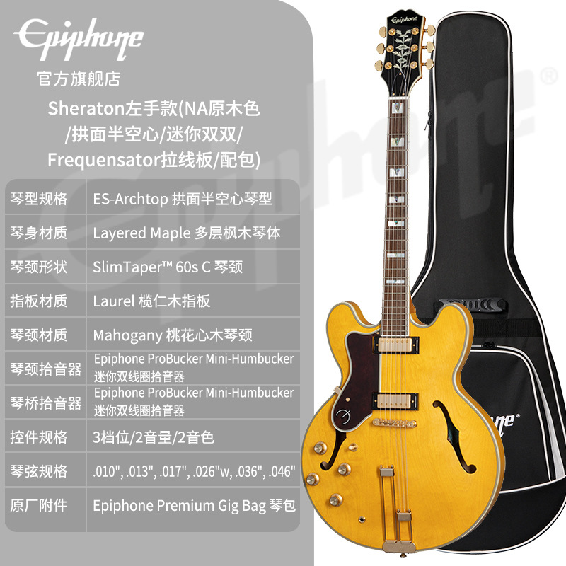 • Sheraton 왼손 모델(NA 우드 컬러 아치 반중공 미니 더블 및 더블 Frequensator 케이블 플레이트 패키지 포함)