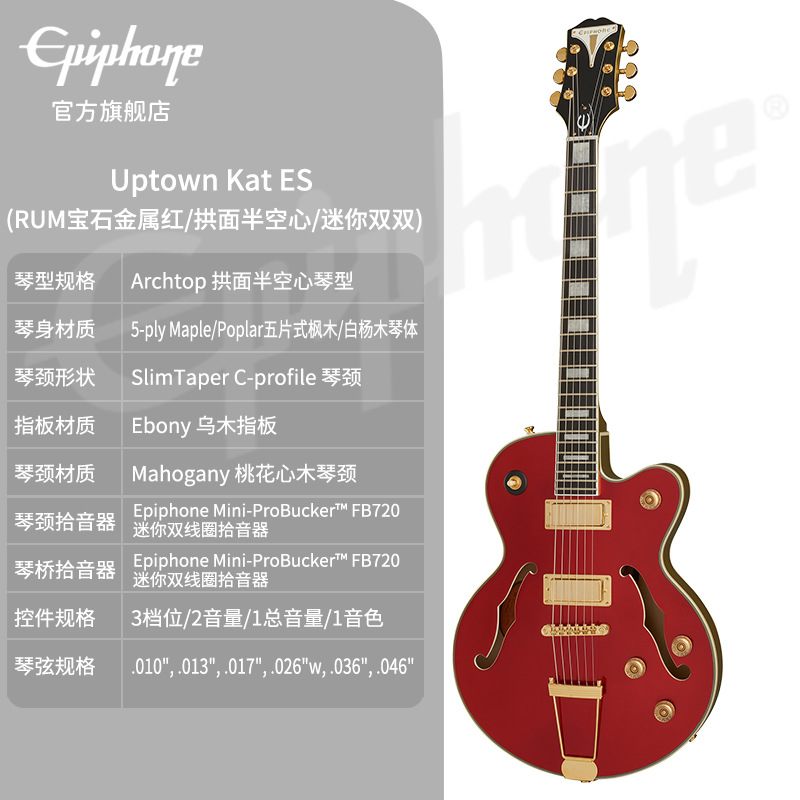 • Uptown-Kat-ES-(RUM 스톤 메탈릭 레드 아치 세미 할로우 미니 더블)