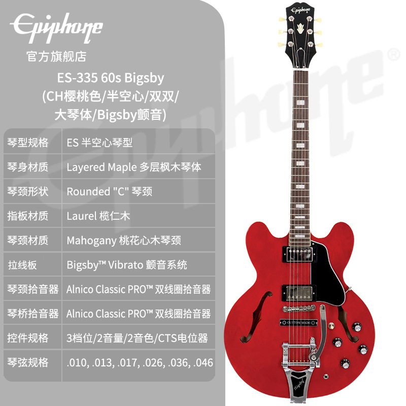 • ES-335 60s Bigsby (CH 체리색 세미 할로우 더블 빅 바디 빅비 트레몰로)