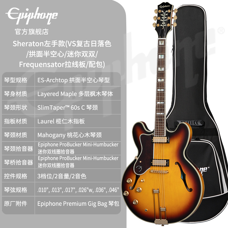 • Sheraton 왼손 모델(VS 레트로 선셋 컬러 아치형 반중공 미니 더블 및 더블 Frequensator 케이블 보드 패키지)