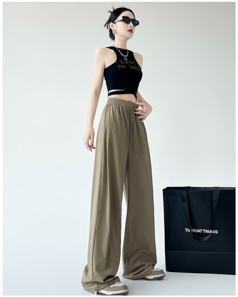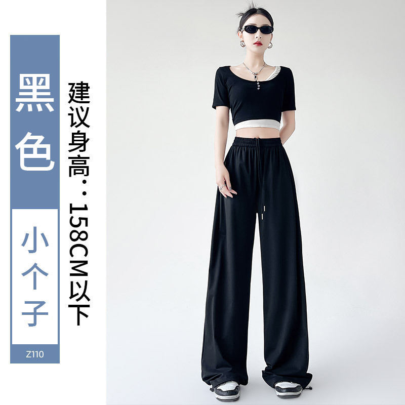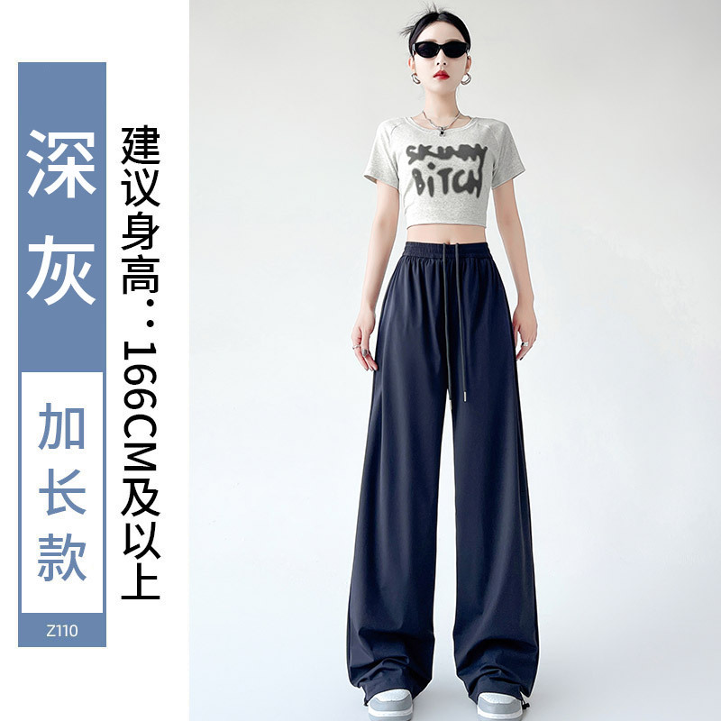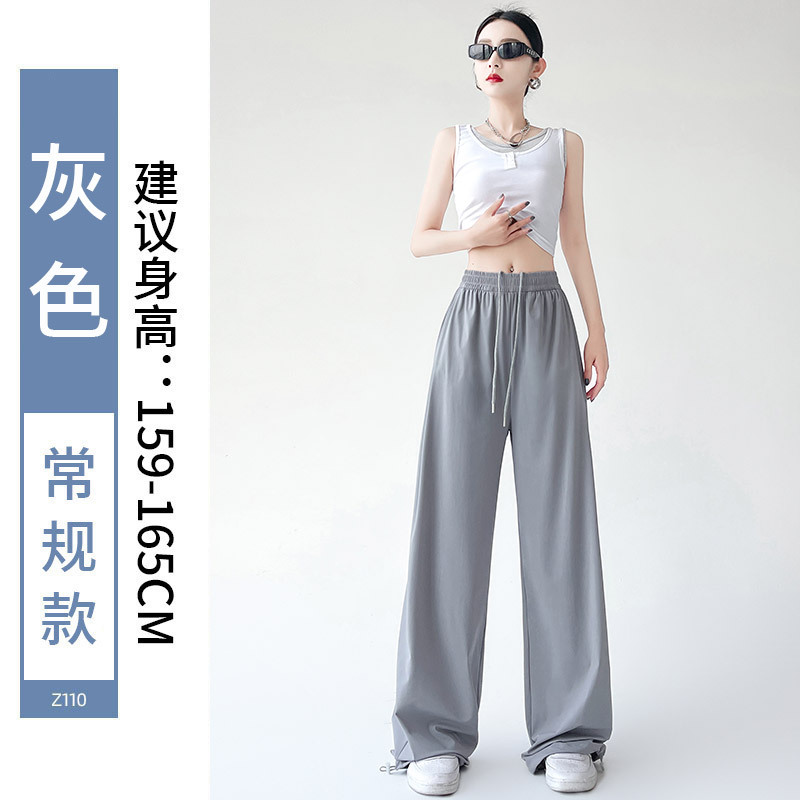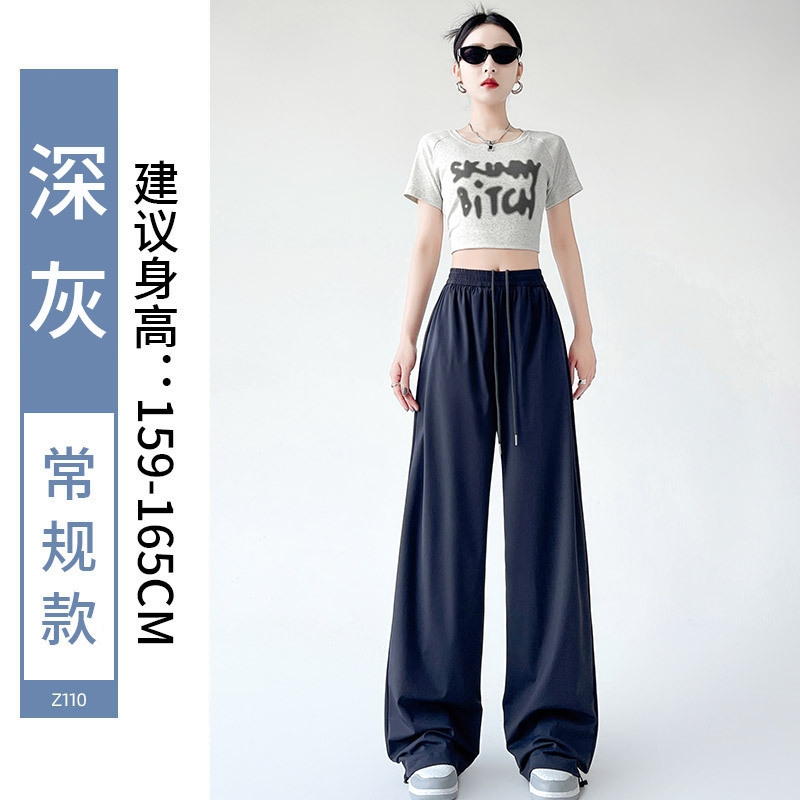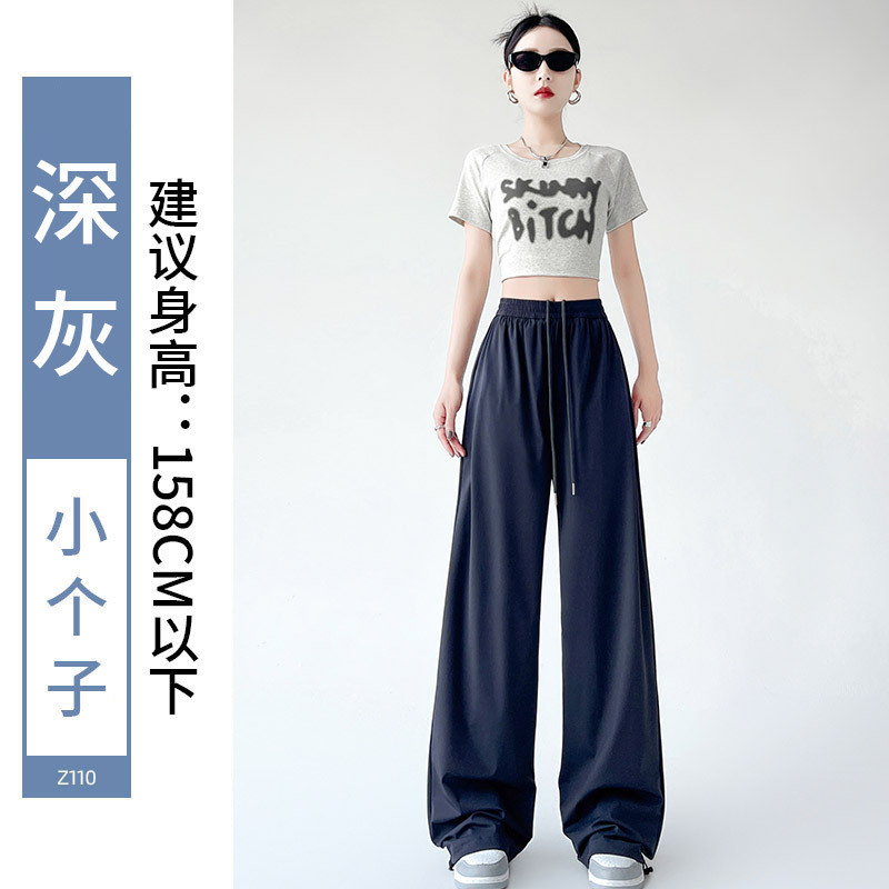 아이스 실크 크록 바지 여자 여름 2025 새로운 봄과 가을 작은 미국 스타일 발목 바지 충전 빠른 건조 스포츠 바지