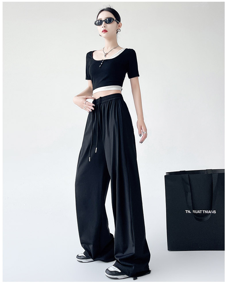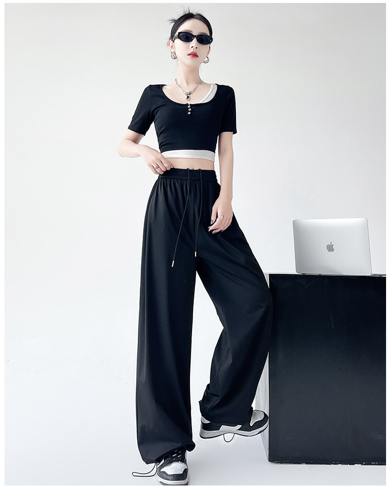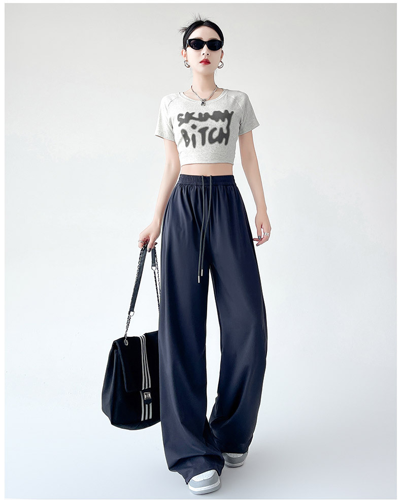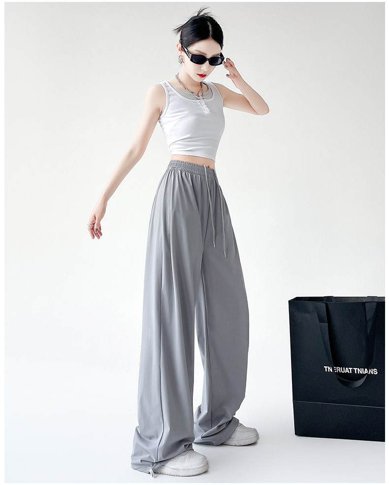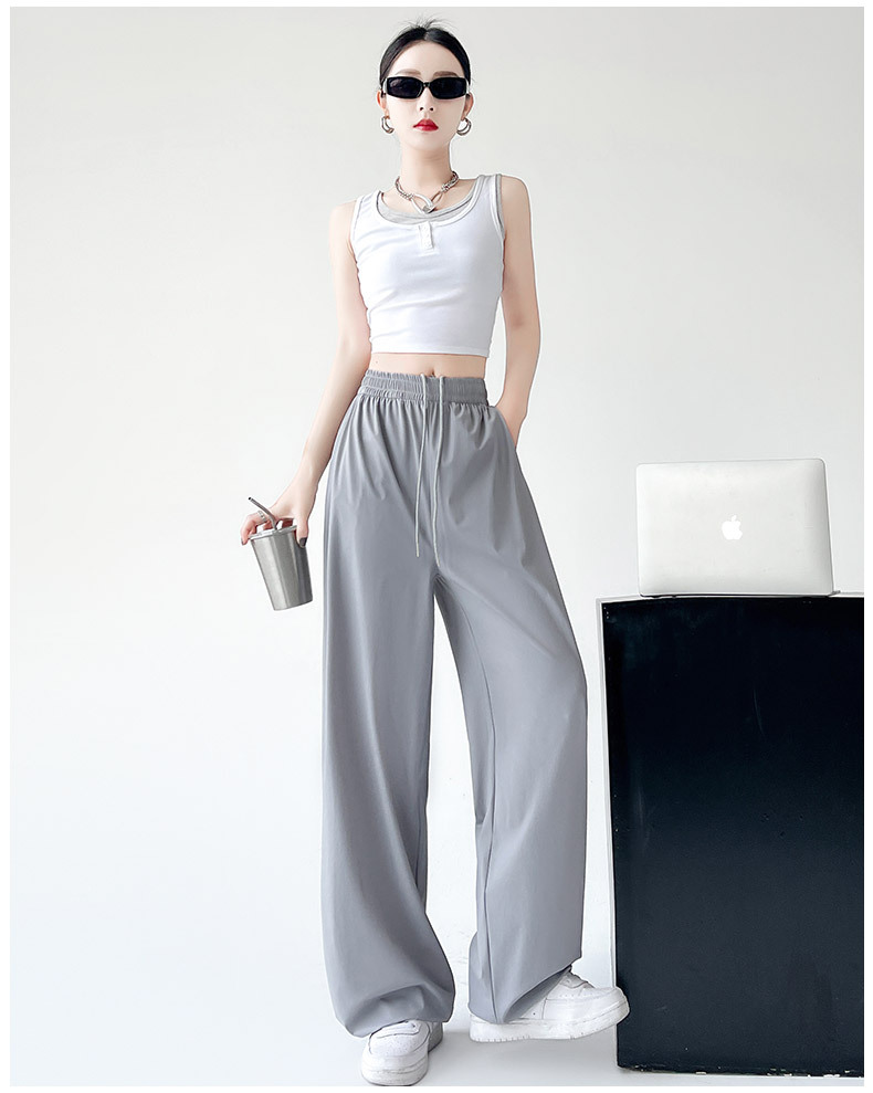아이스 실크 크록 바지 여자 여름 2025 새로운 봄과 가을 작은 미국 스타일 발목 바지 충전 빠른 건조 스포츠 바지