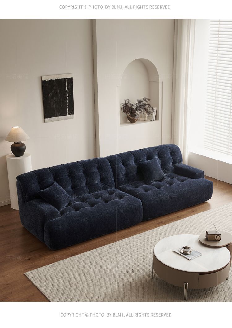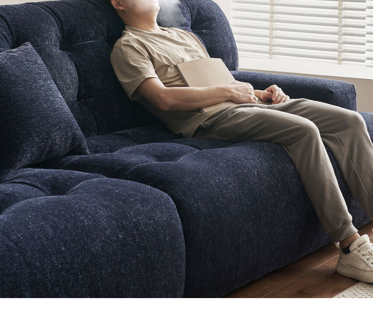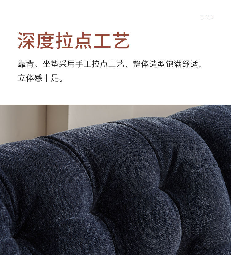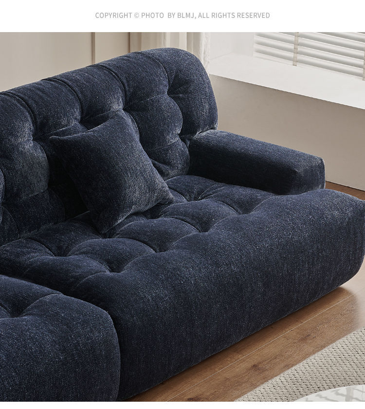리오 소파 2024 새로운 높은 등받이 모투 얼음 꽃 셔닐 패브릭 소파 복고풍 다크 블루 간단한