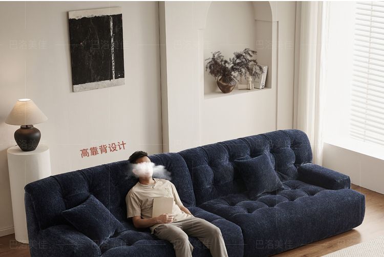 리오 소파 2024 새로운 높은 등받이 모투 얼음 꽃 셔닐 패브릭 소파 복고풍 다크 블루 간단한스토어 가기