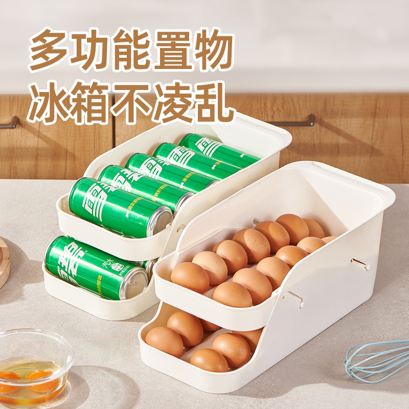 다기능 냉장고 보관 상자 주방 음료 콜라 계란 마무리 상자 더블 레이어 롤링 서랍 유형 보관 랙