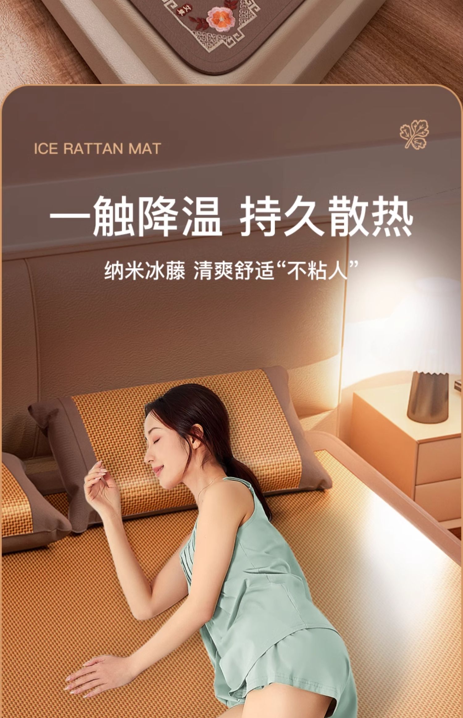 • [두껍고 시원한 스타일] 고풍스러운 얼음 등나무 매트 [베갯잇 포함]