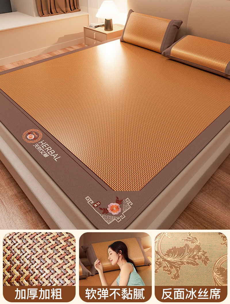 Y * J2025 새로운 여름 매트 천연 등나무 매트 여름 아이스 실크 밀짚 매트 홈 양면 겨울과 여름 침대 매트
