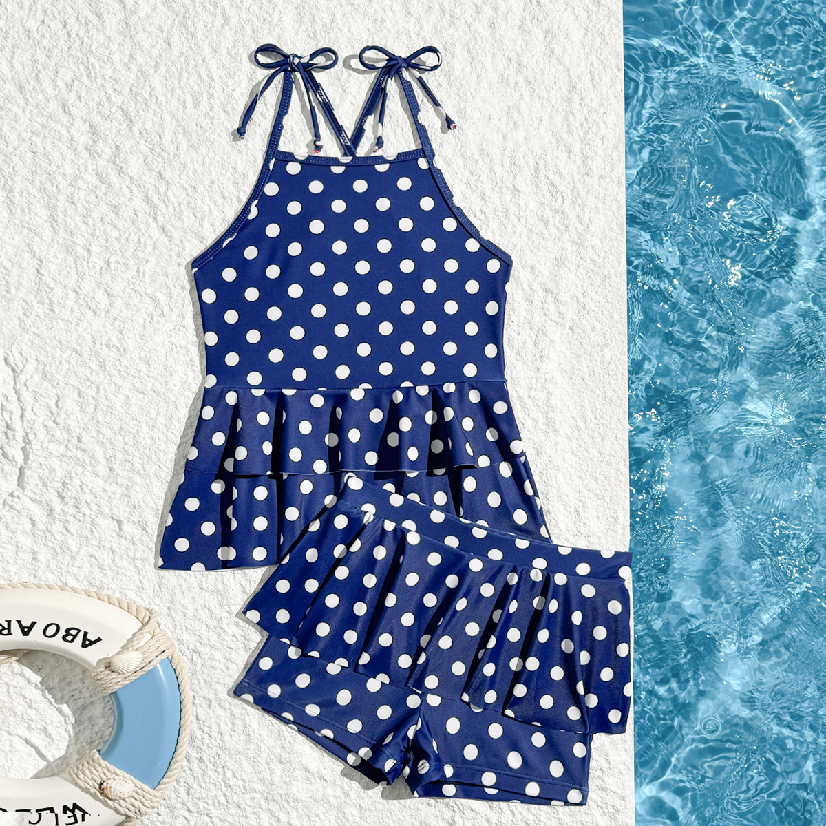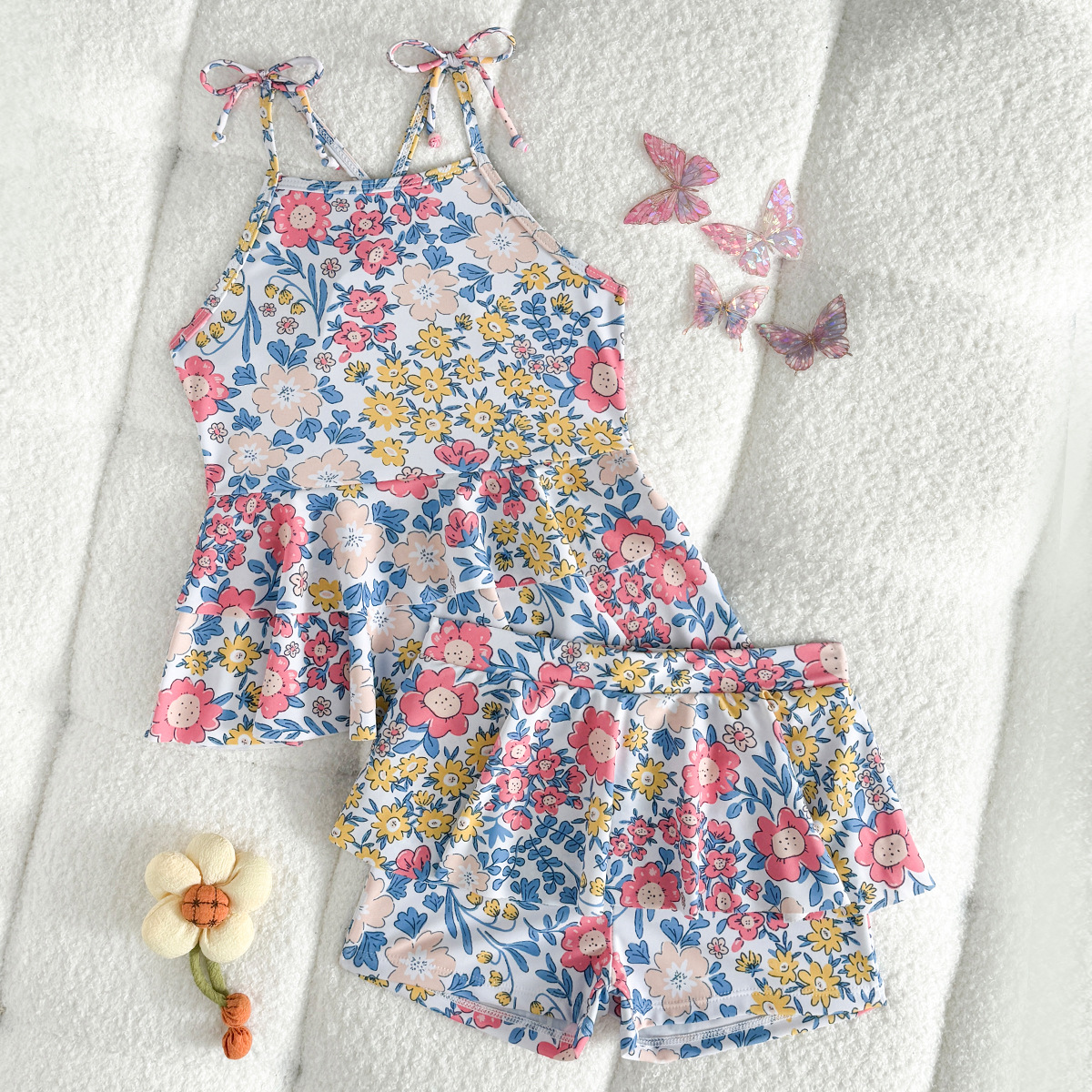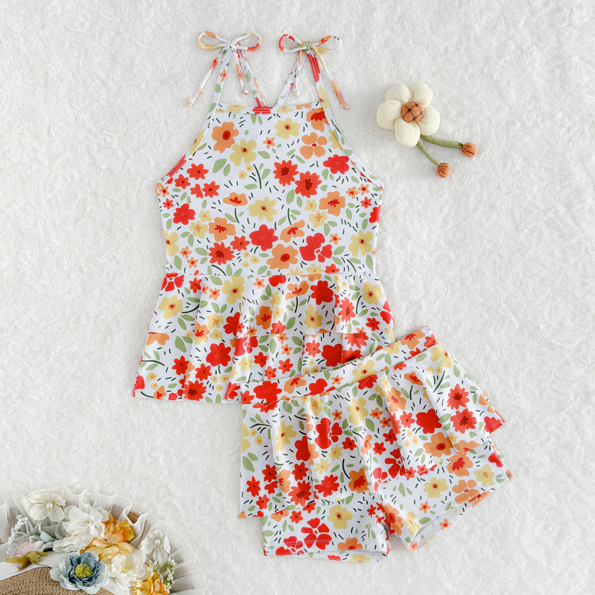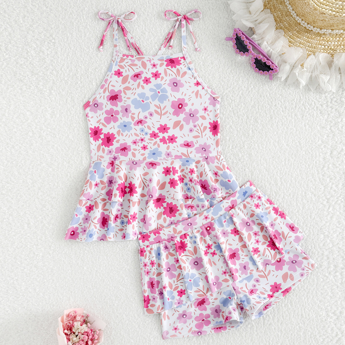 유럽과 미국의 어린이 수영복 소녀의 분할 수영복 인쇄 러플 스커트 수영복 3Y-11Y 조정 가능한 어깨 끈 수영복