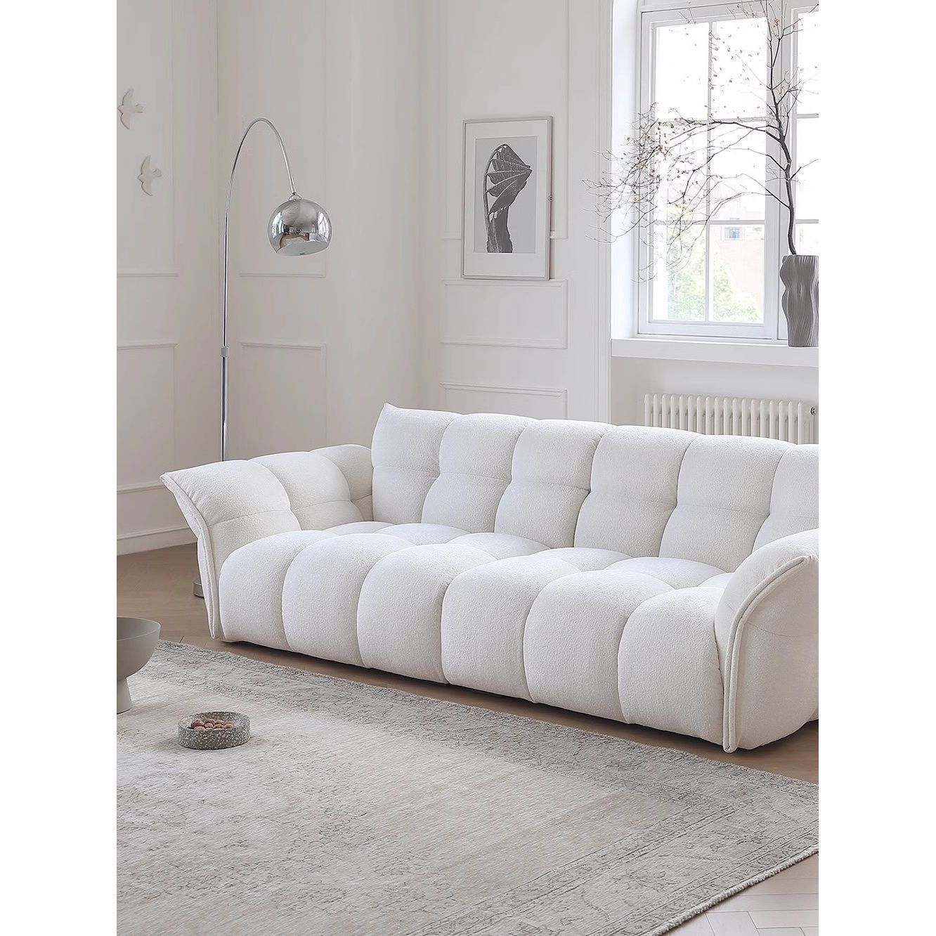 프랑스 크림 스타일 패브릭 소파 거실 현대 간단한 크고 작은 아파트 3 인 특수 모양의 꽃잎 릴리 소파스토어 가기
