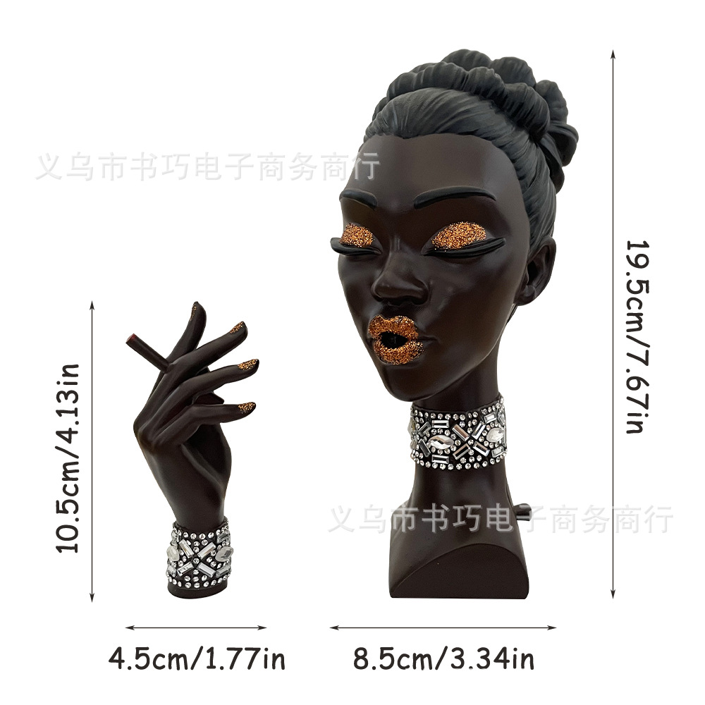 국경을 넘는 새로운 유럽 스타일의 창조적 인 검은 여성 머리 향 버너 수지 공예 그림 조각 홈 장식