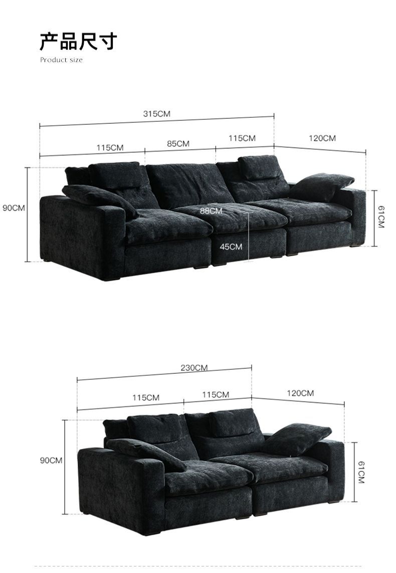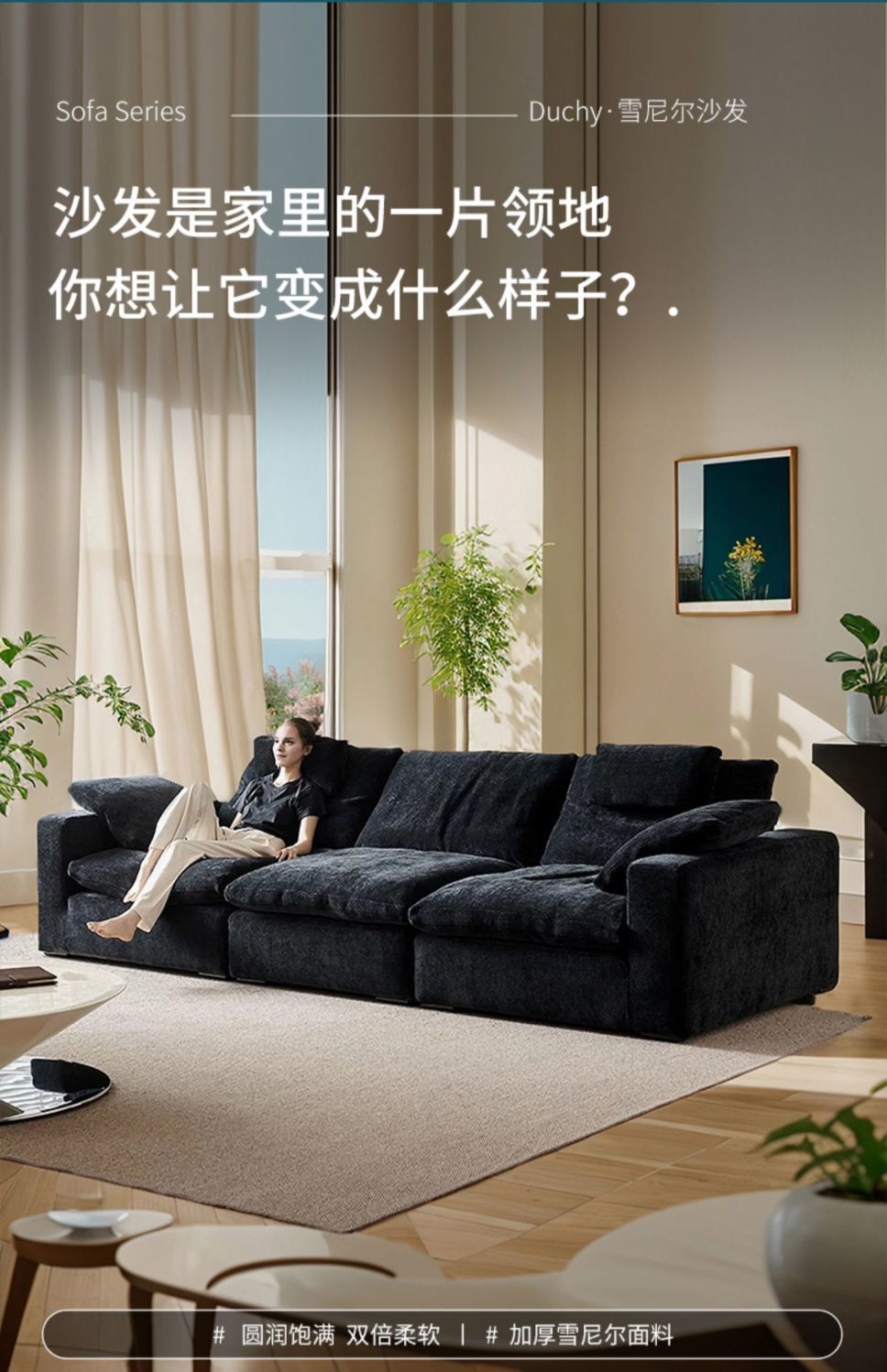 Chenille 소파 슈퍼 와이드 패브릭 소파 거실 2024 새로운 구름 조정 가능한 등받이 블랙 클라우드 소파스토어 가기
