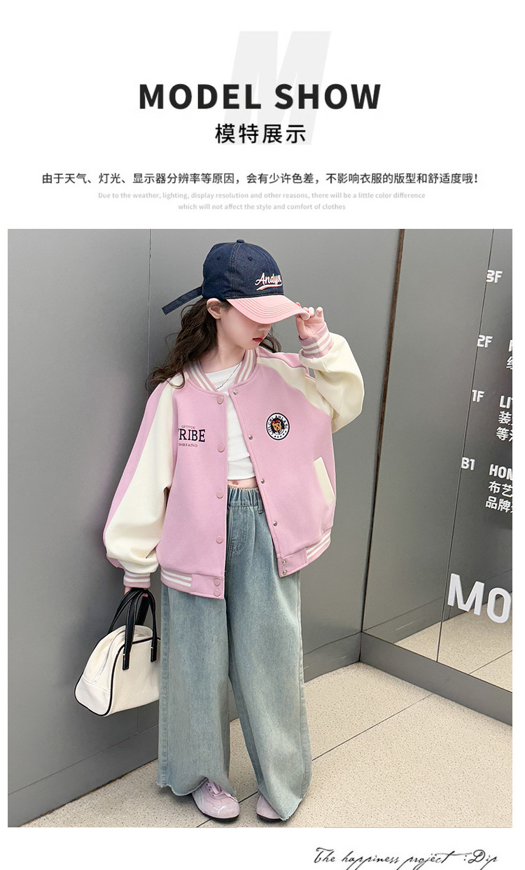 소녀 봄 라운드 레이블 야구 세트 코트 2025 새로운 도착 CUHK 어린이 스타일 캐주얼 재킷 윈드브레이커 봄과 가을 옷스토어 가기