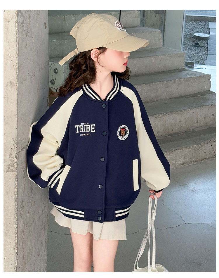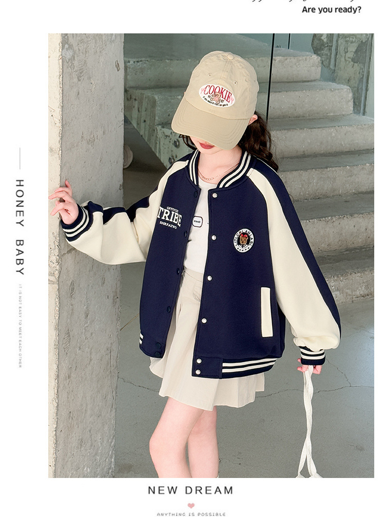 소녀 봄 라운드 레이블 야구 세트 코트 2025 새로운 도착 CUHK 어린이 스타일 캐주얼 재킷 윈드브레이커 봄과 가을 옷