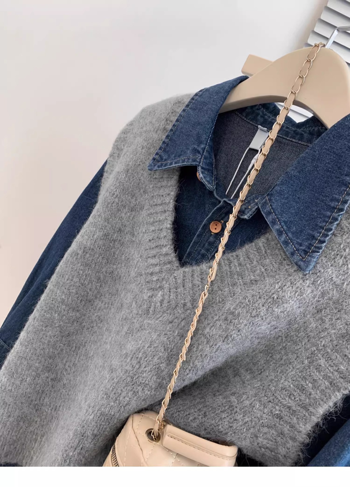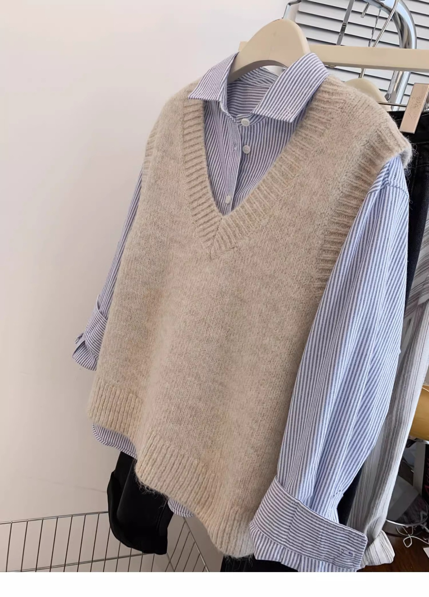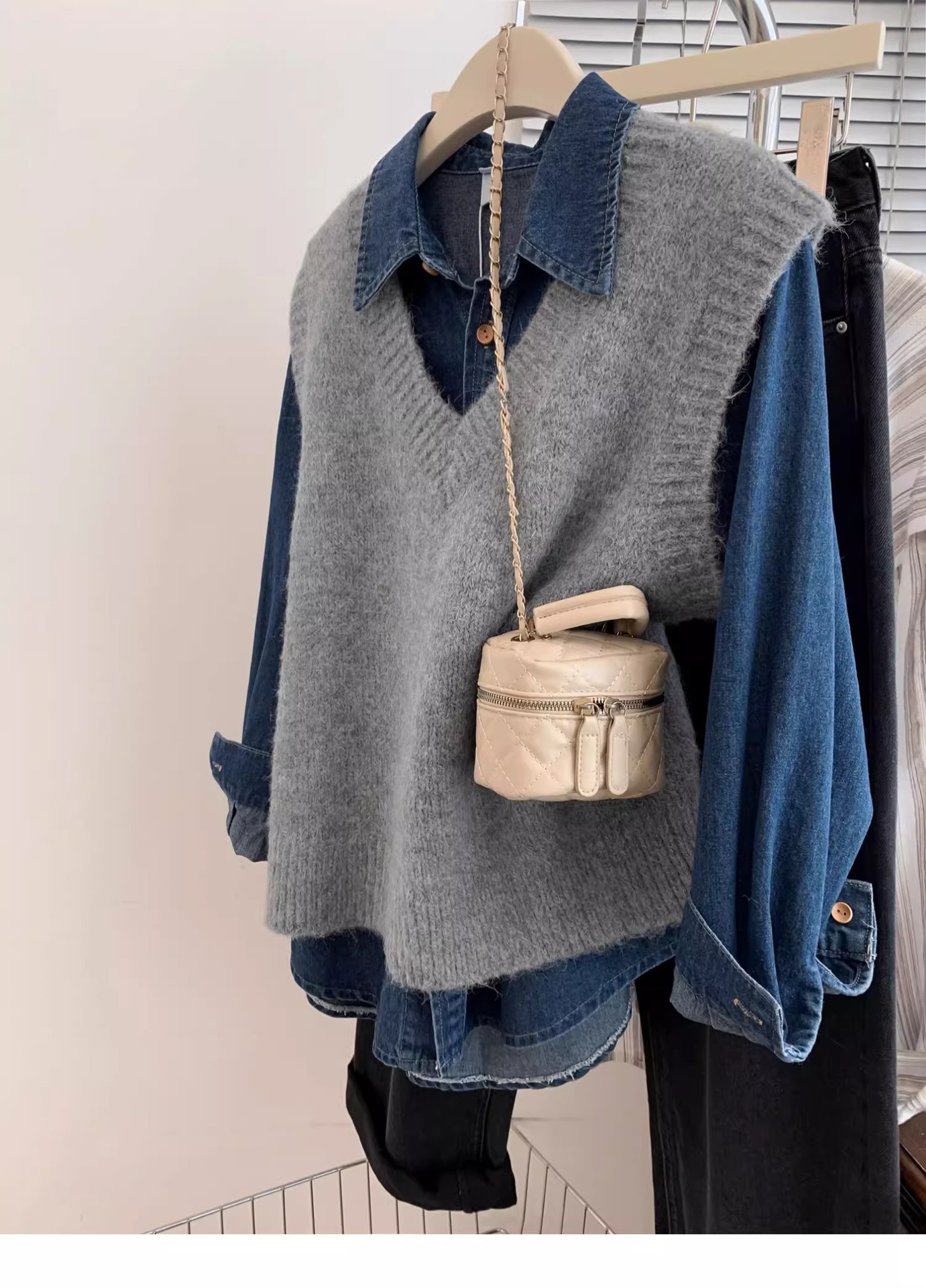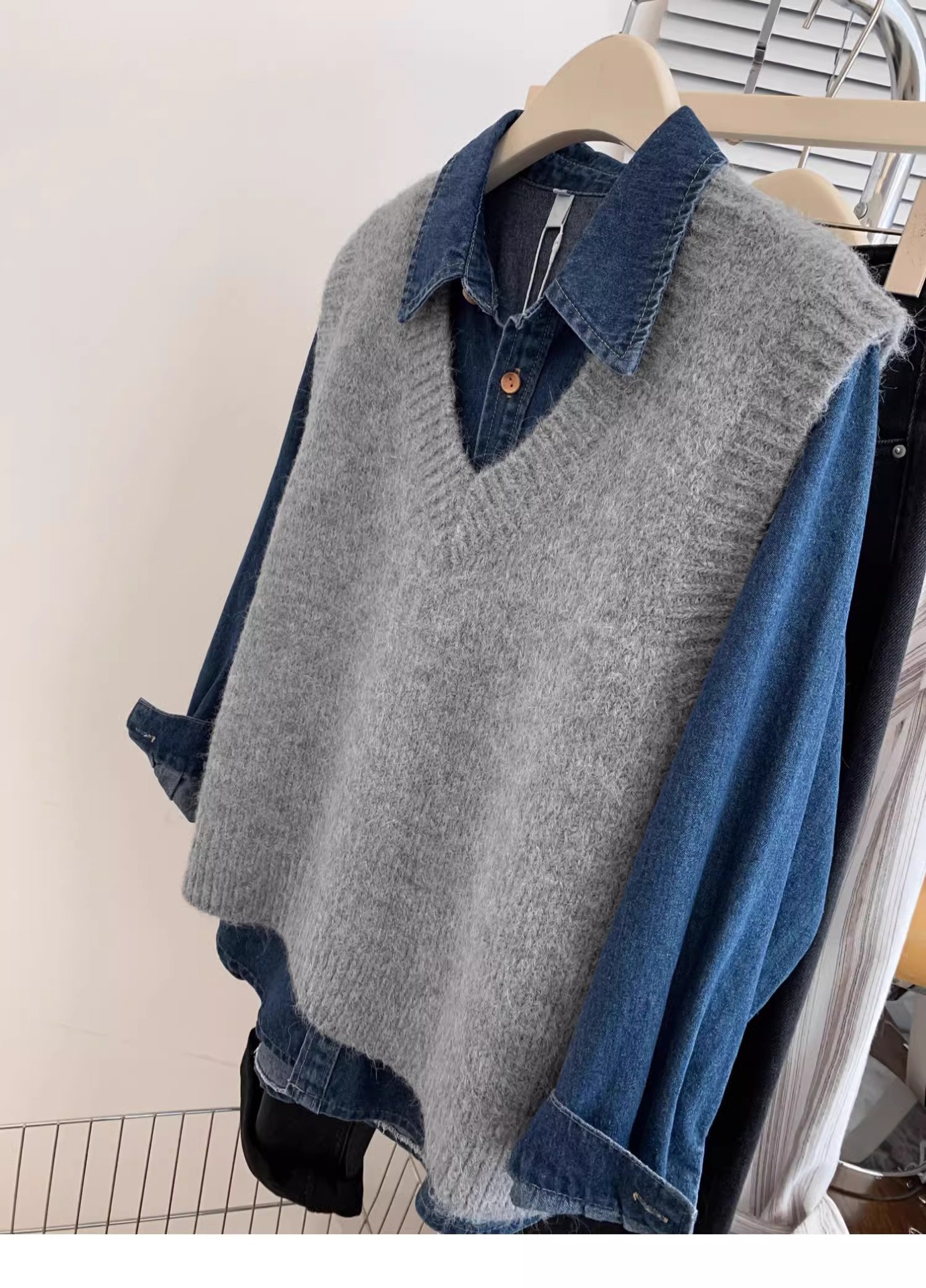 KANING 그레이 일본식 브이넥 니트 조끼 여성용 2025 가을 신상 조끼 레이어드 조끼 루즈핏 아우터스토어 가기