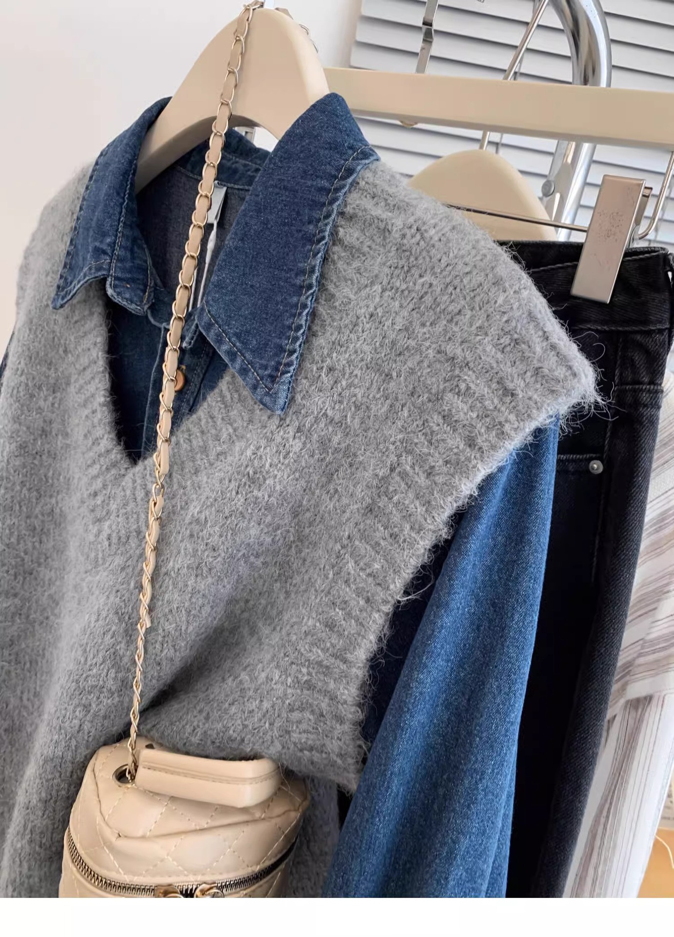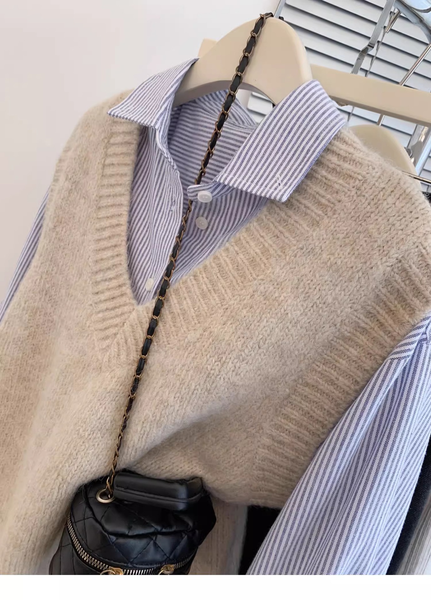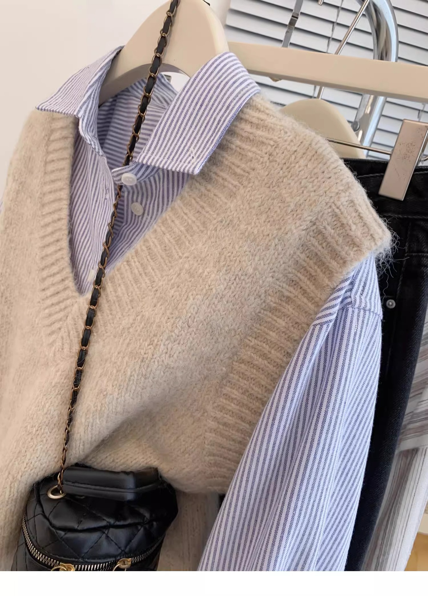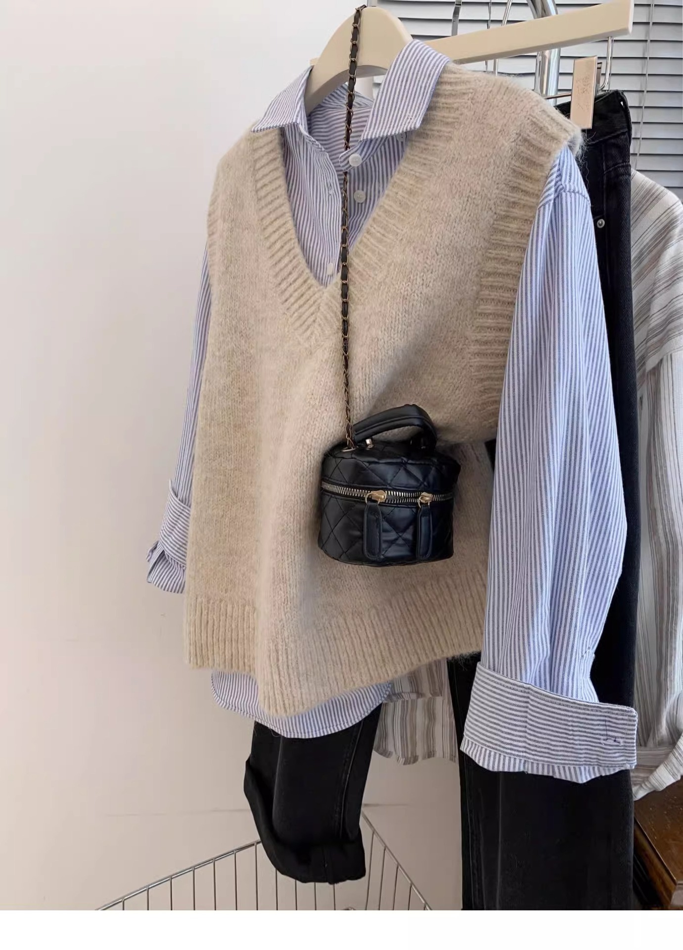 KANING 그레이 일본식 브이넥 니트 조끼 여성용 2025 가을 신상 조끼 레이어드 조끼 루즈핏 아우터스토어 가기