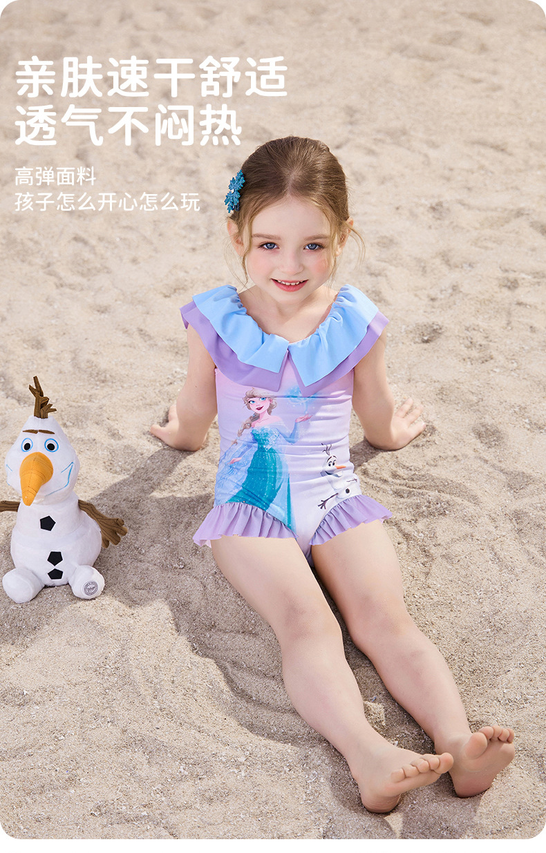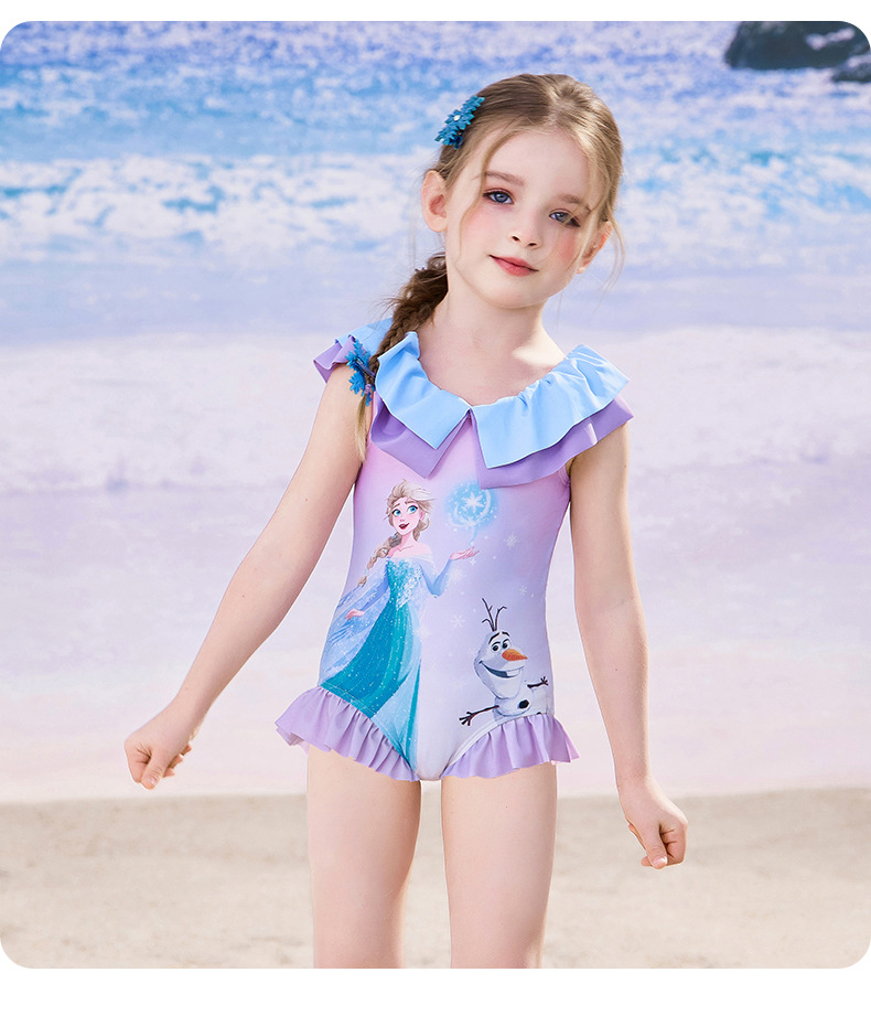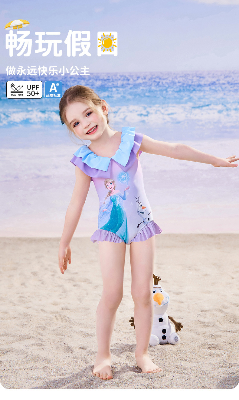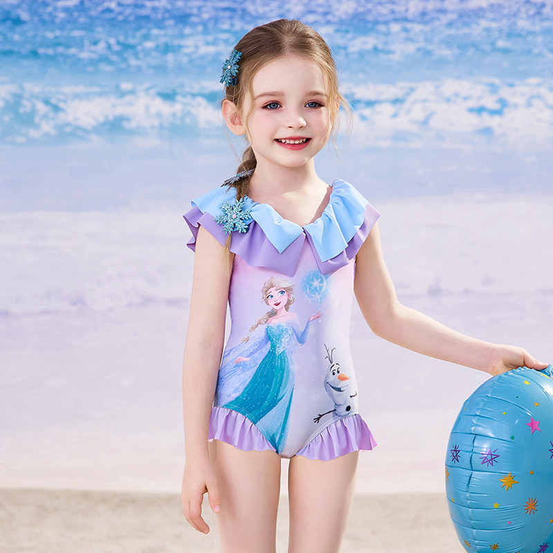 여자를위한 디즈니 어린이 수영복 2025 새로운 도착 키즈 아기 스타일리스트 공주 아이샤 원피스 여성용 온천 수영복