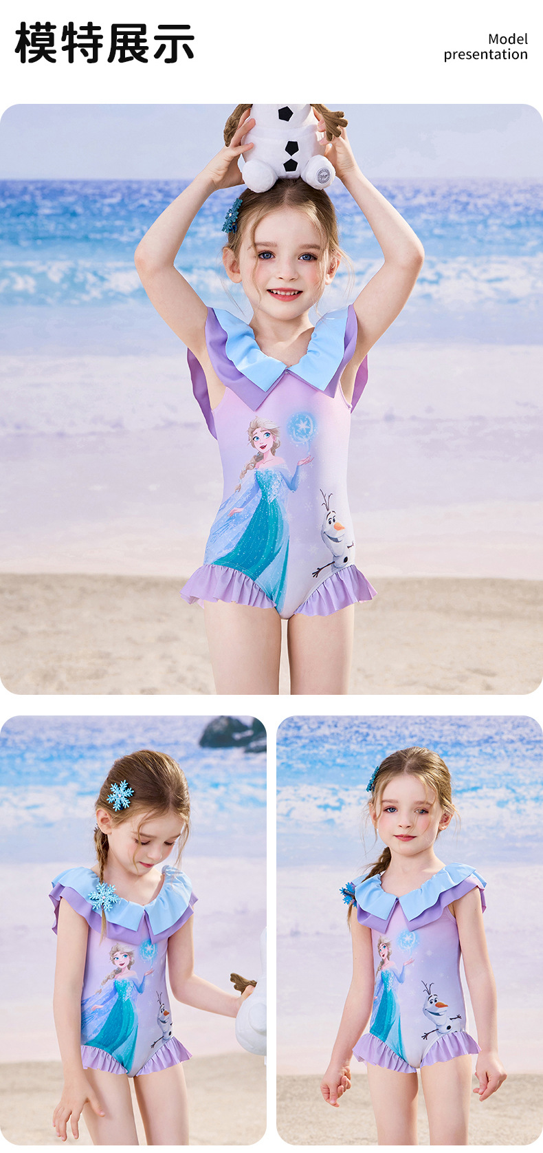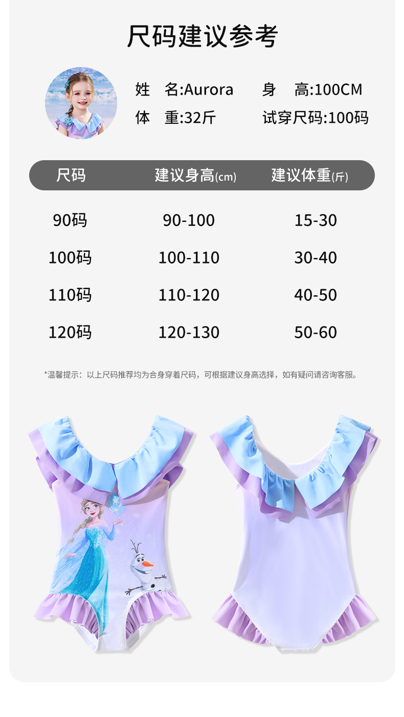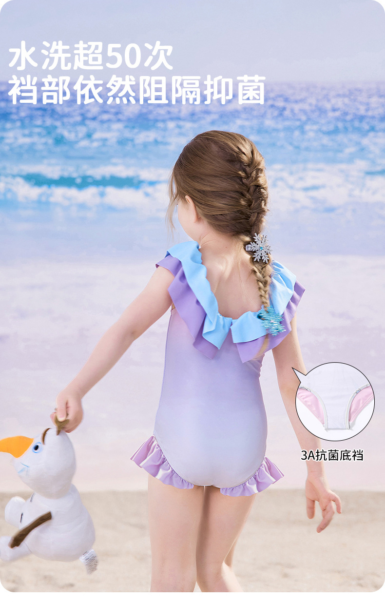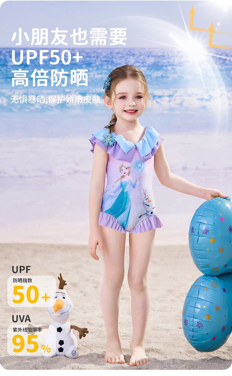 여자를위한 디즈니 어린이 수영복 2025 새로운 도착 키즈 아기 스타일리스트 공주 아이샤 원피스 여성용 온천 수영복