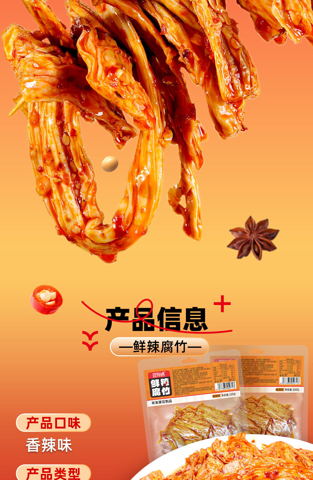 콩 맛 신선하고 매운 유바 특별 수제 매운 고대 절인 레저 드라마 인스턴트 스낵