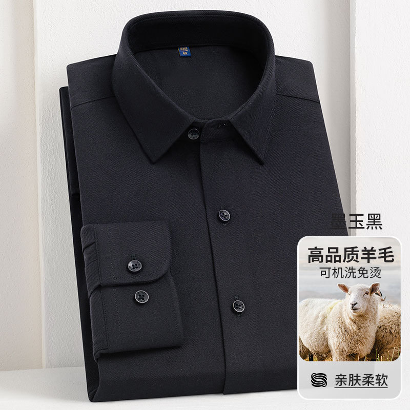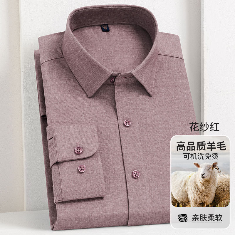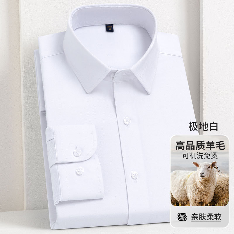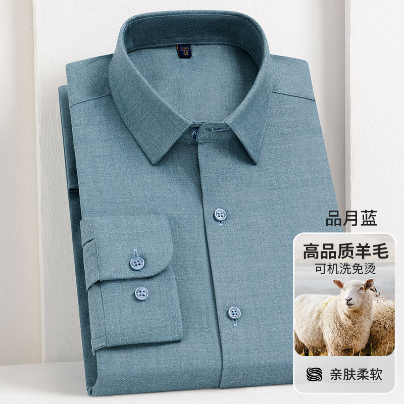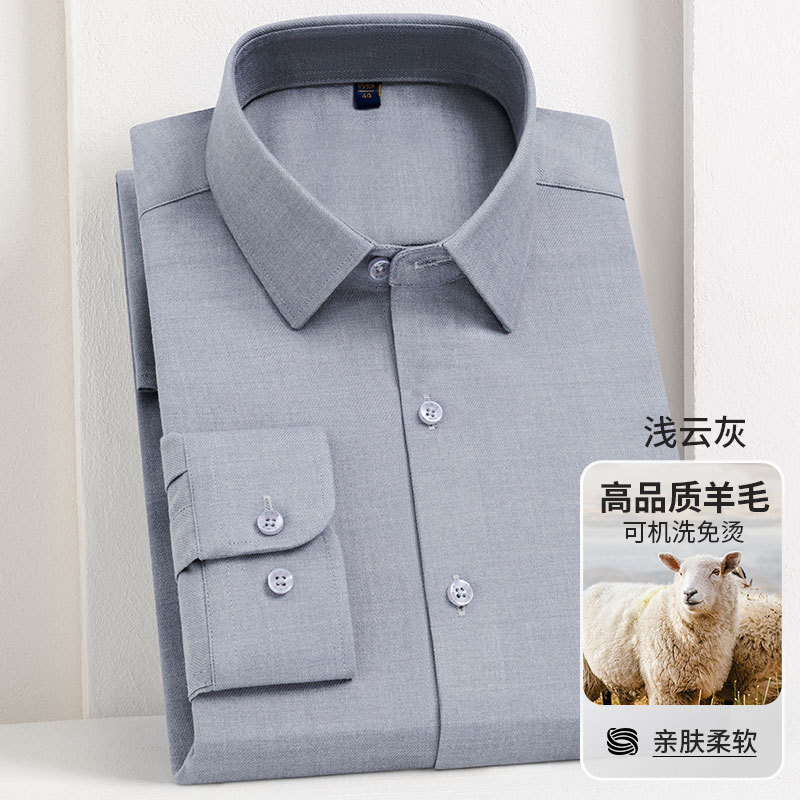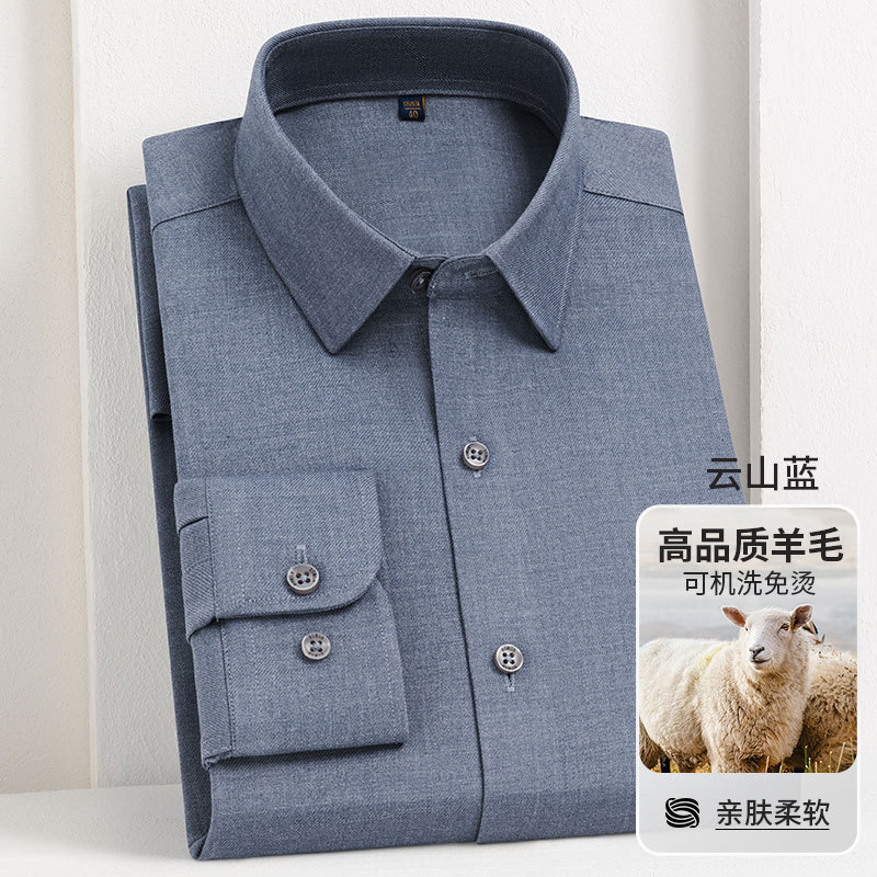 남성 셔츠 2025 봄과 가을 양 양모 주름 방지 기계 세탁기 청소년 빛 럭셔리 비즈니스 캐주얼 비 다림질 긴 소매스토어 가기