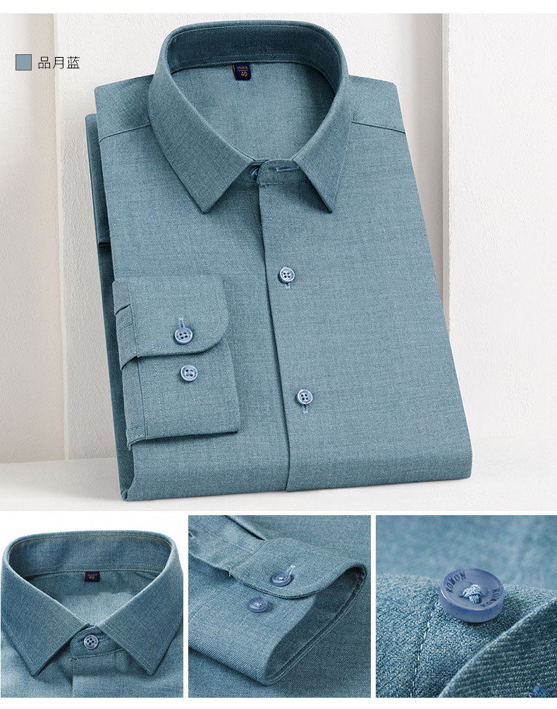 남성 셔츠 2025 봄과 가을 양 양모 주름 방지 기계 세탁기 청소년 빛 럭셔리 비즈니스 캐주얼 비 다림질 긴 소매