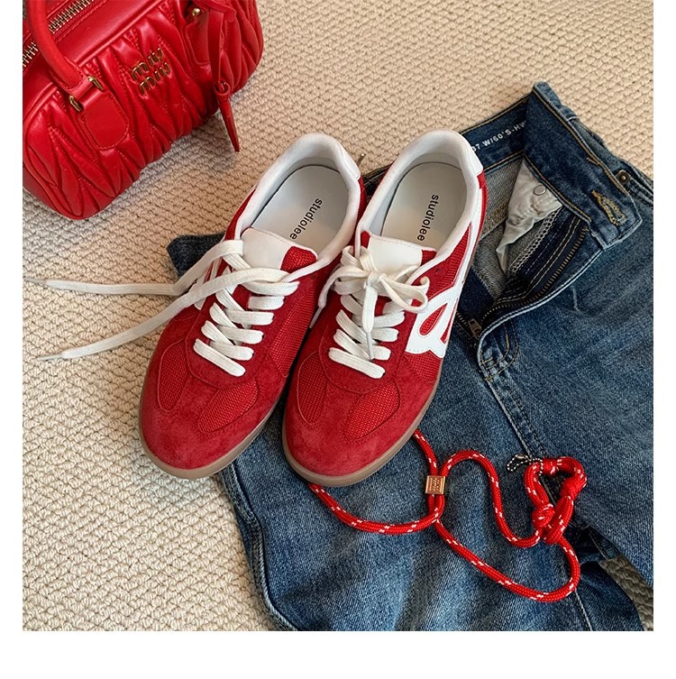 포도 엄마 같은 스타일 정품 가죽 빈티지 통기성 라운드 토 레이스 업 두꺼운 밑창 경량 독일 훈련 보드 신발