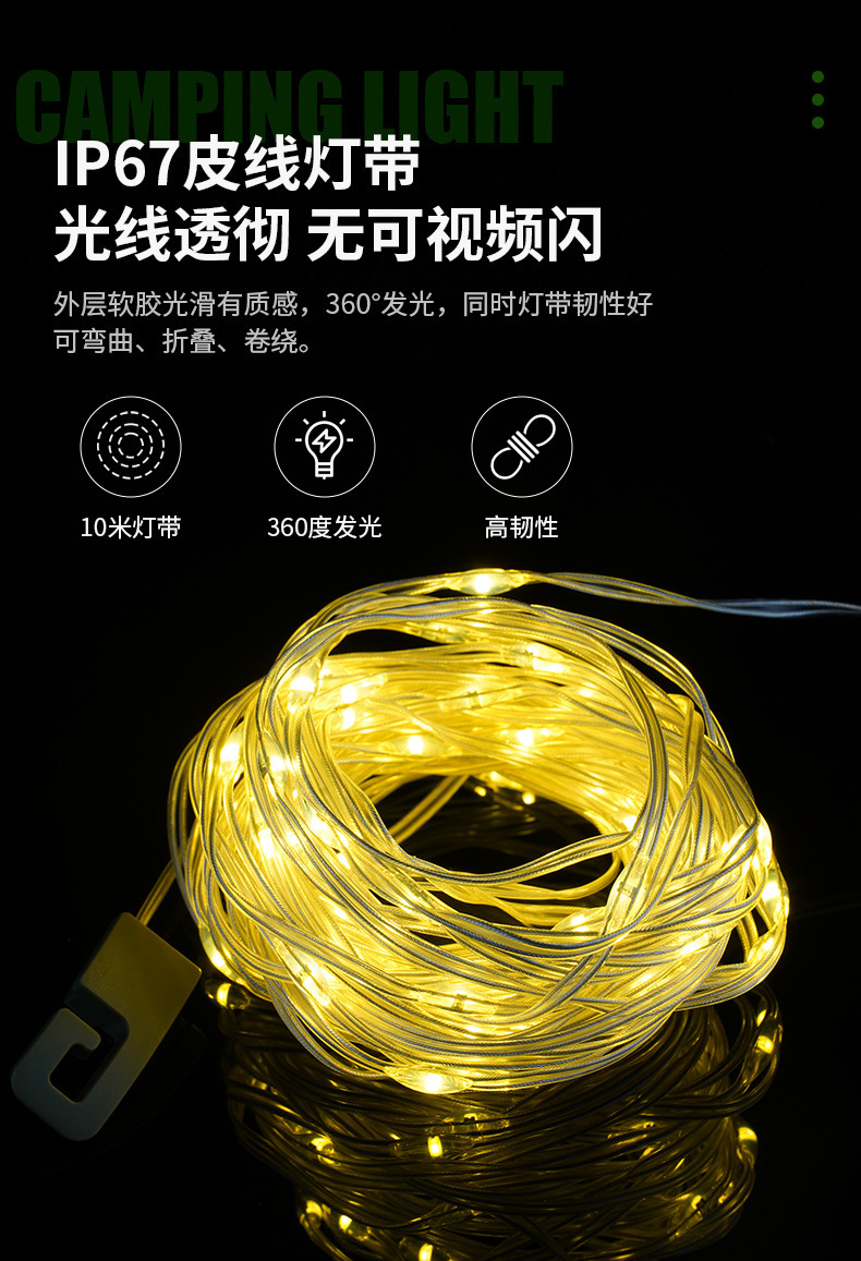 국경 LED 캠핑 램프 야외 방수 캠핑 램프 USB 충전 다채로운 문자열 램프 테이프 측정 저장 대기 텐트 램프