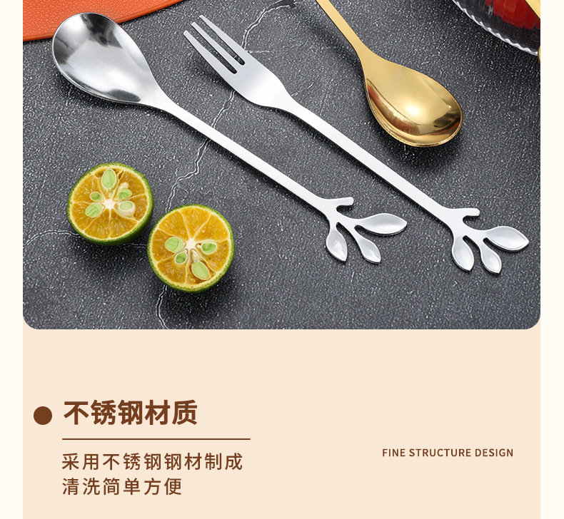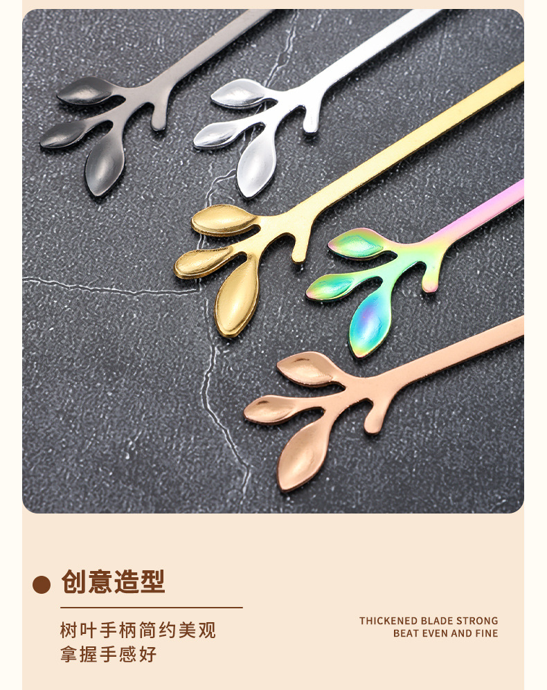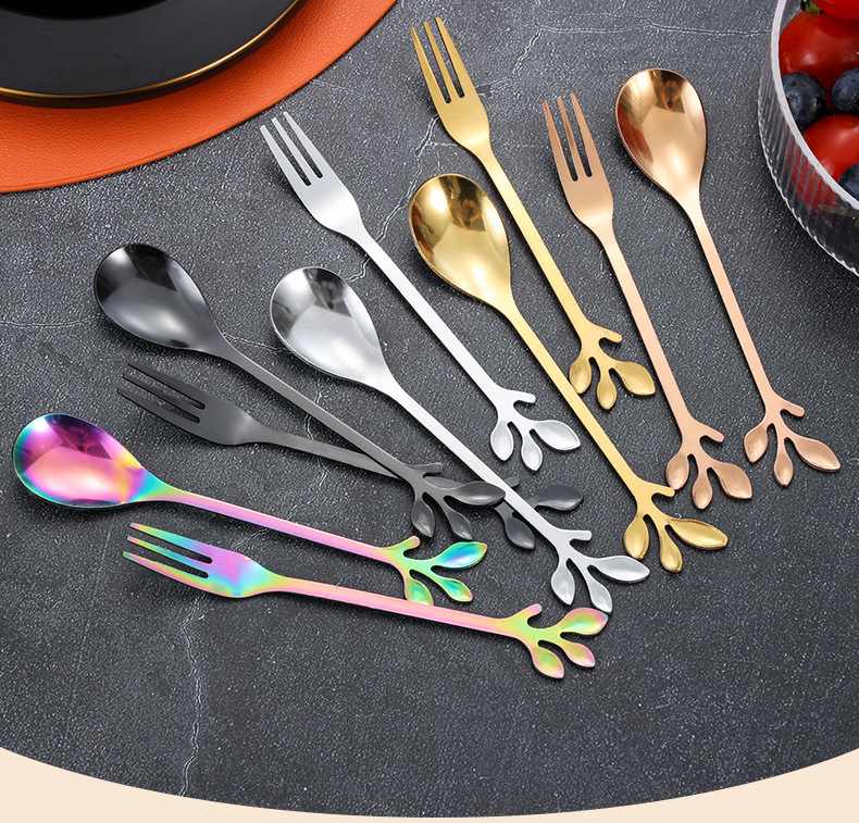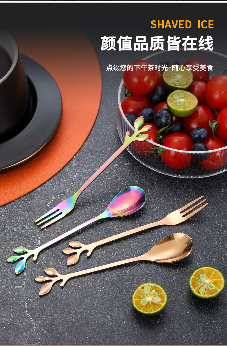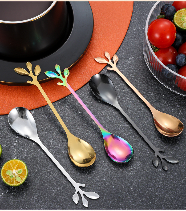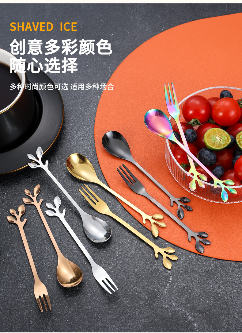 스테인레스 스틸 커피 스푼 높은 색 가치 리프 스푼 가정용 스푼 디저트 스푼 혼합 스푼 과일 포크 선물 스푼 도매