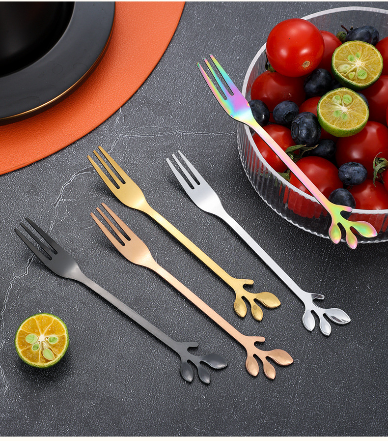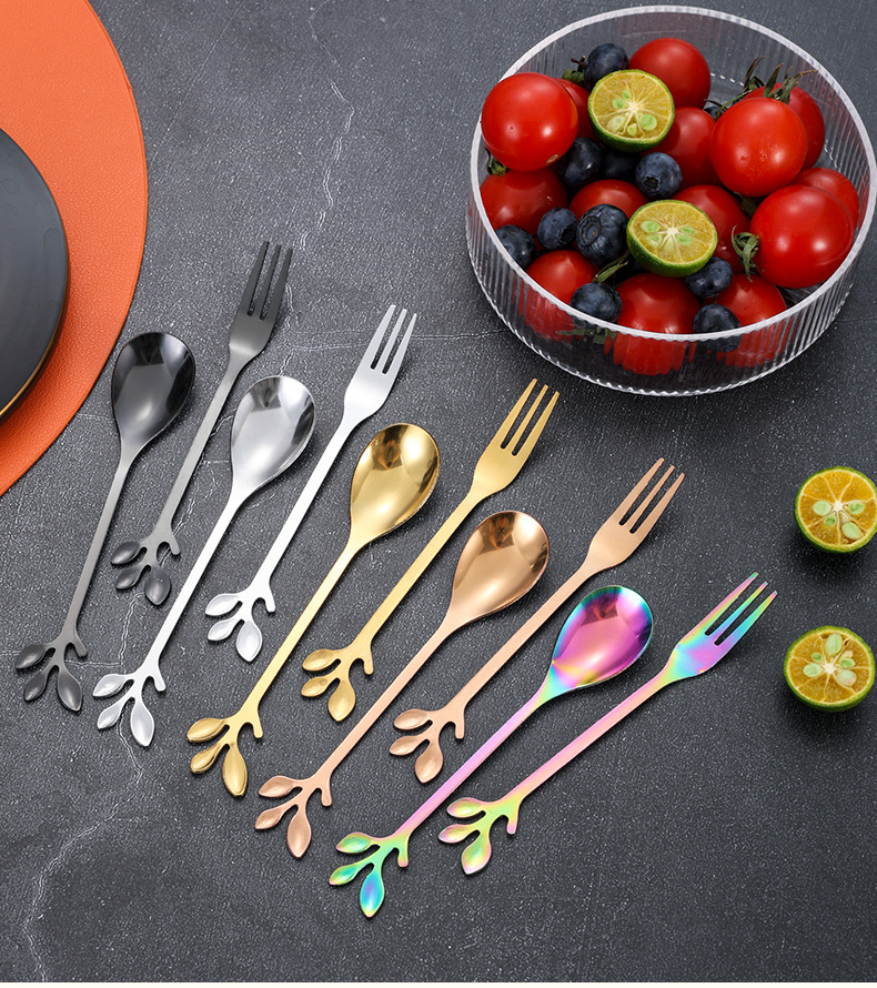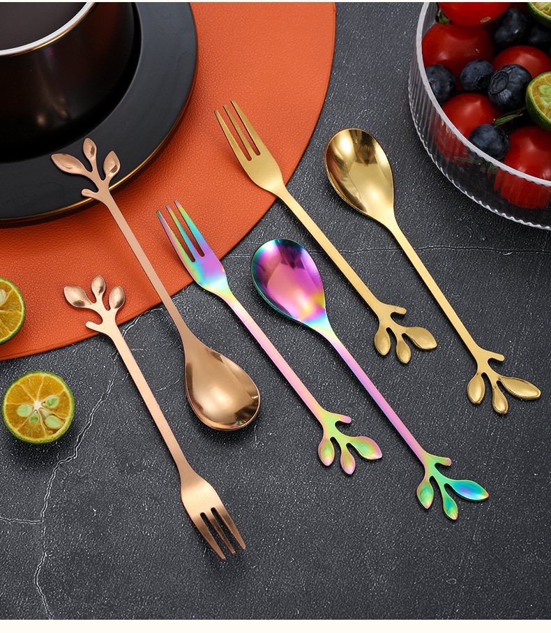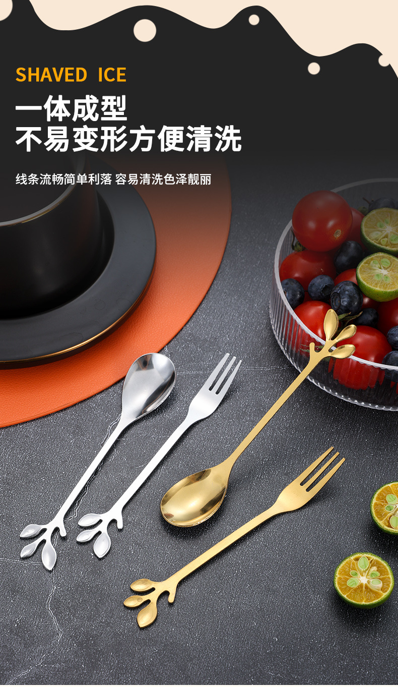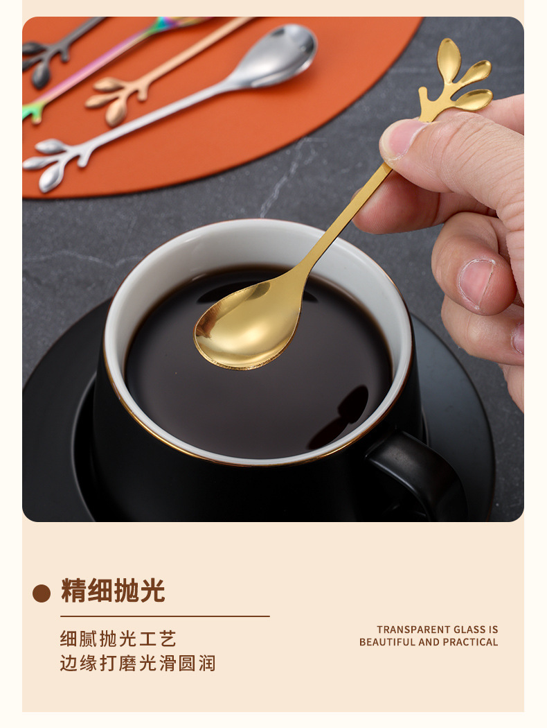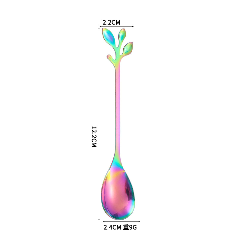 스테인레스 스틸 커피 스푼 높은 색 가치 리프 스푼 가정용 스푼 디저트 스푼 혼합 스푼 과일 포크 선물 스푼 도매