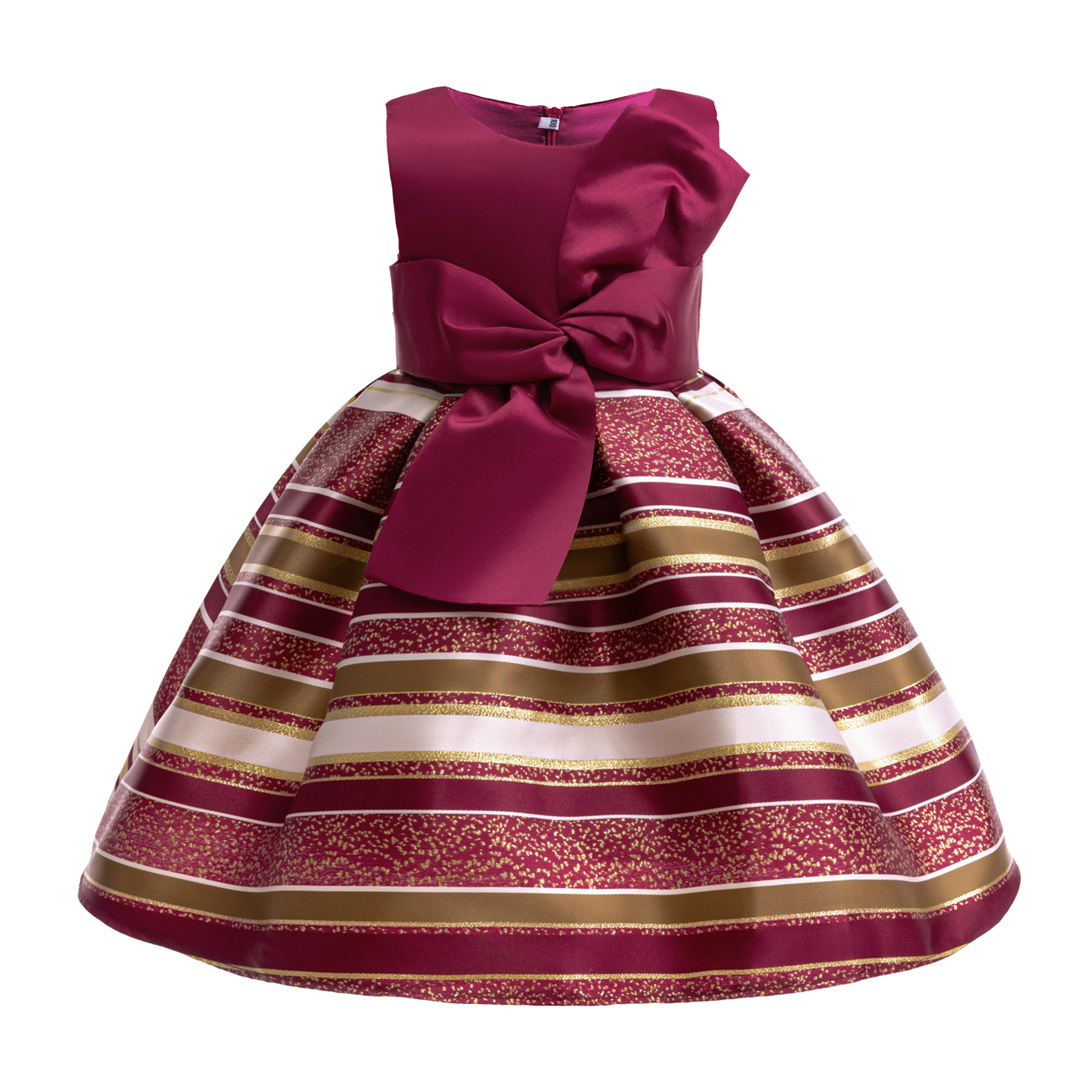국경 간 어린이 드레스 2025 크리스마스 큰 활 어린이 옷 소녀 조끼 줄무늬 파티 드레스 공주 드레스스토어 가기