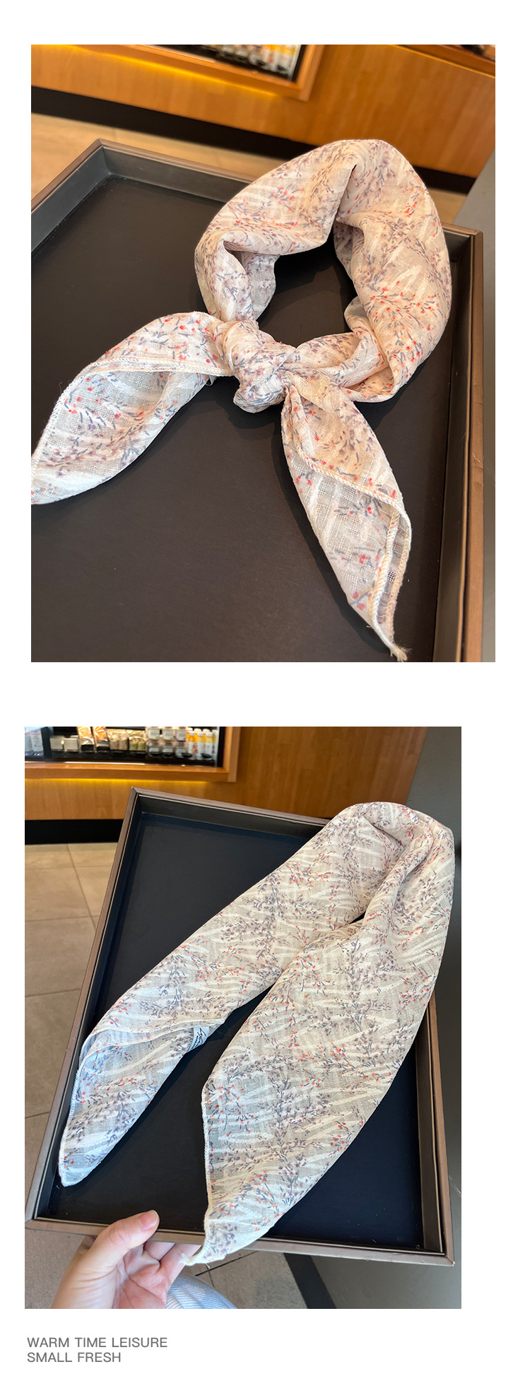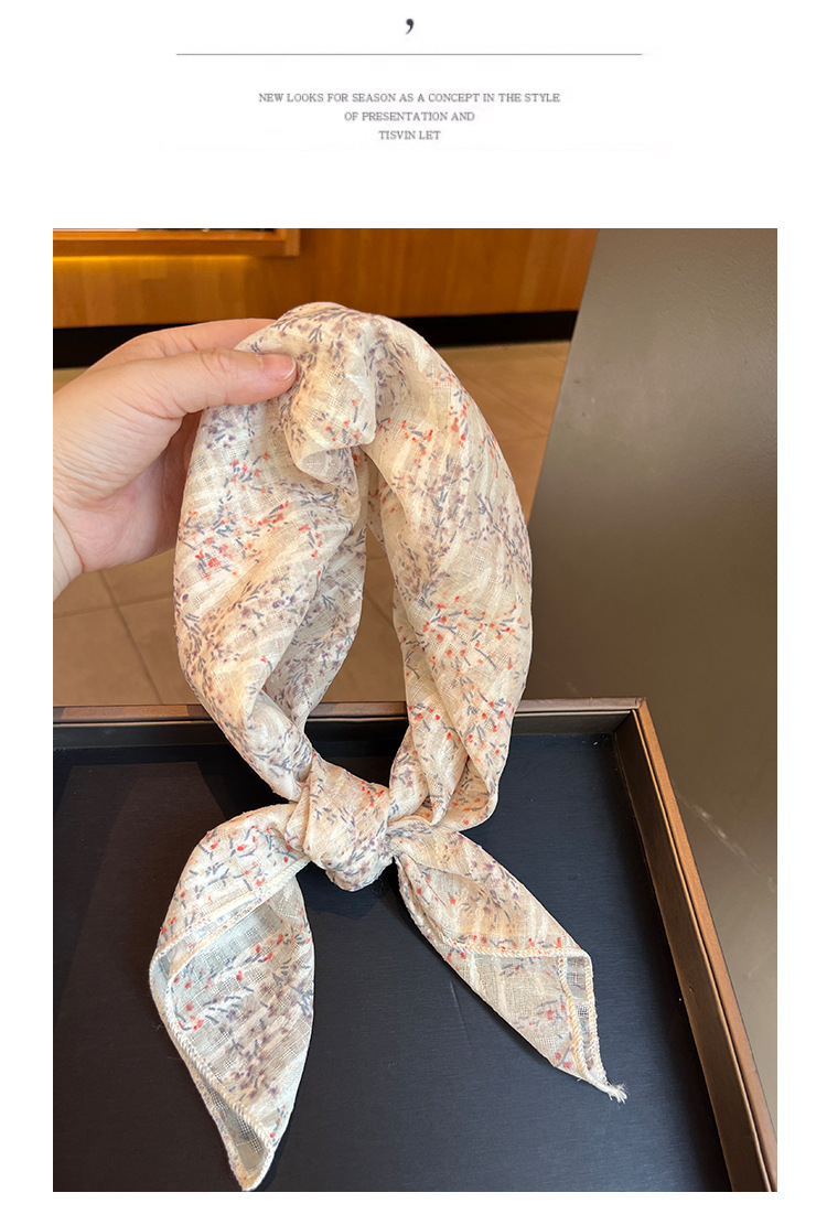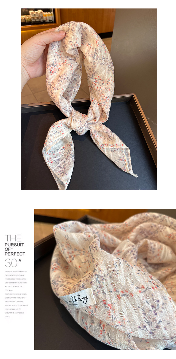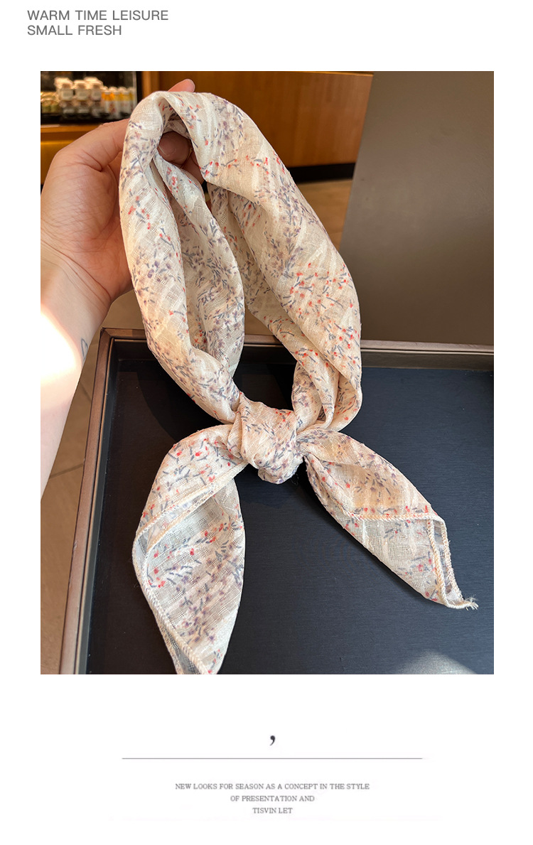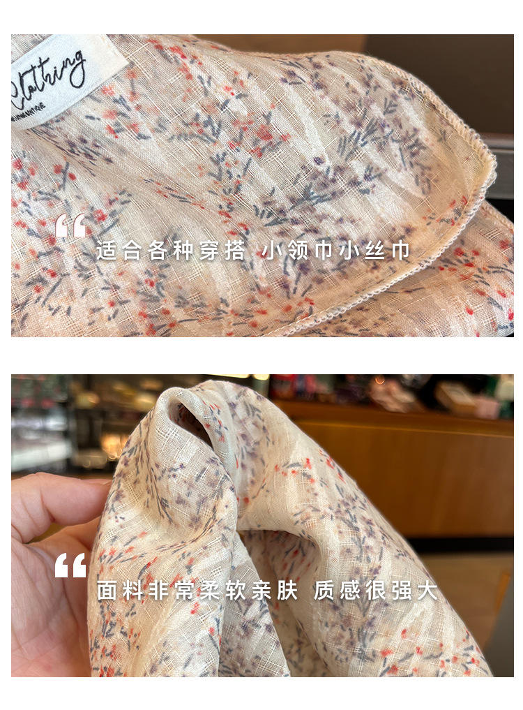 法式田园风棉麻碎花方巾春季薄围巾复古柔软甜美头巾韩版百搭丝巾