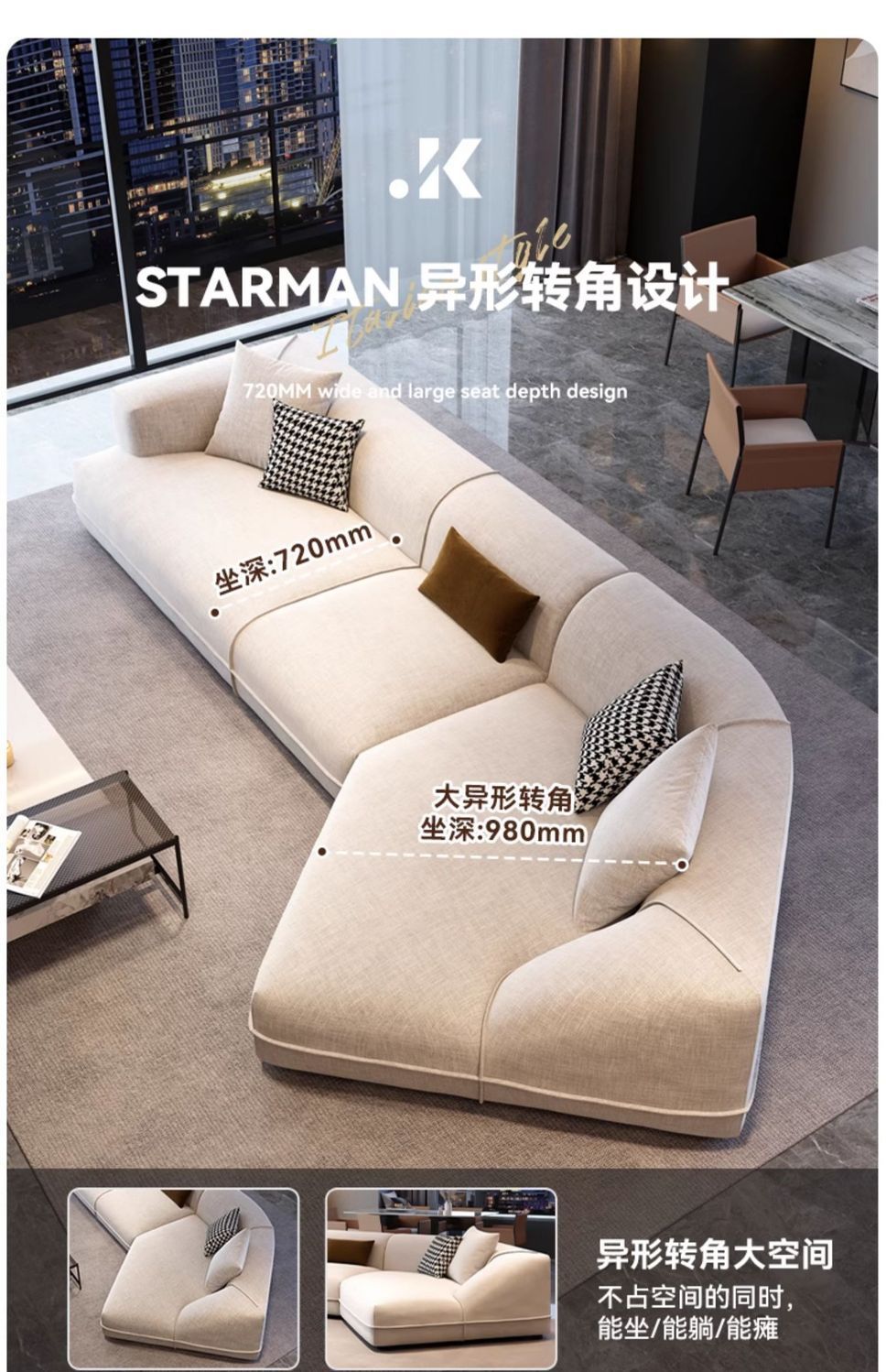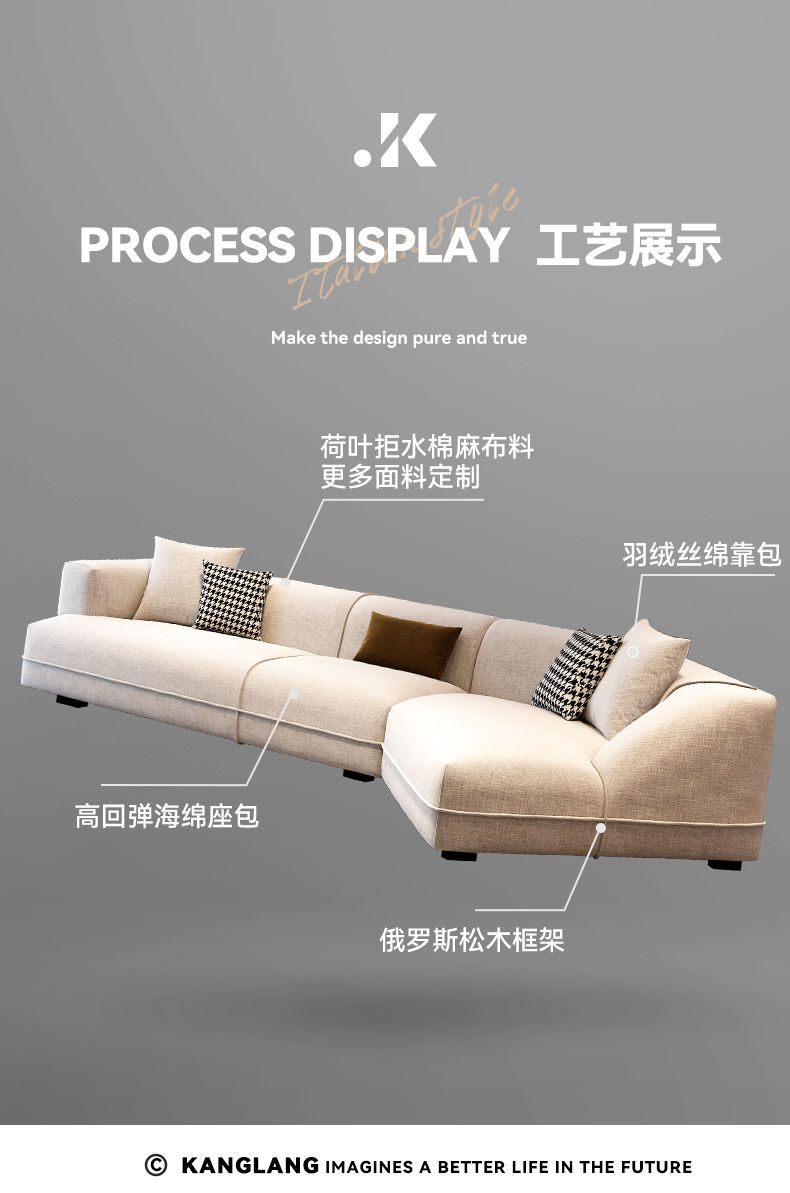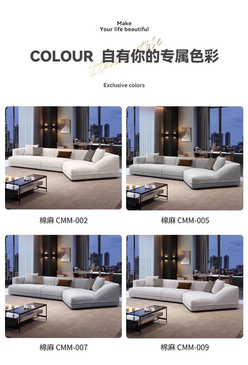 이탈리아 스타일 미니멀리스트 코튼 리넨 패브릭 소파 거실 2024 새로운 크림 스타일 현대 간단한 모양의 코너 소파