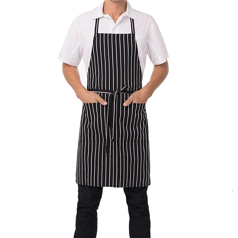亚马逊跨境条纹挂脖围裙美甲家用餐厅烘焙奶茶咖啡店厨房围裙定制