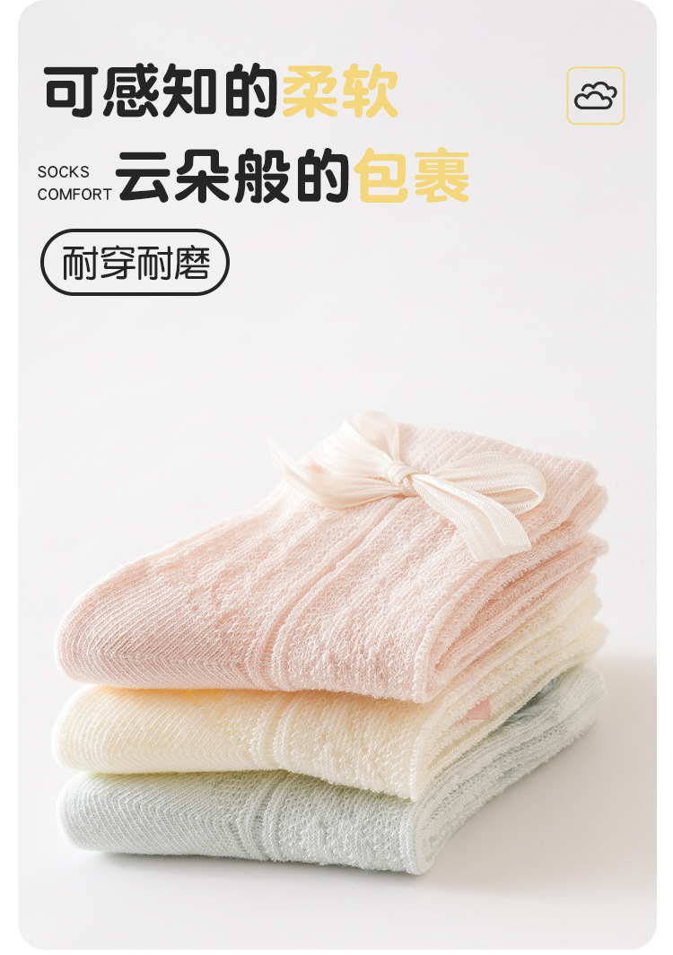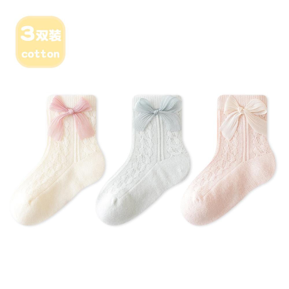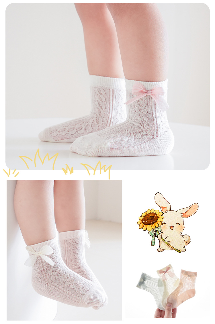 봄과 여름 새로운 메쉬 아기 양말 단색 얇은 활 아기면 양말 뼈없는 소녀 항균 양말 통기성