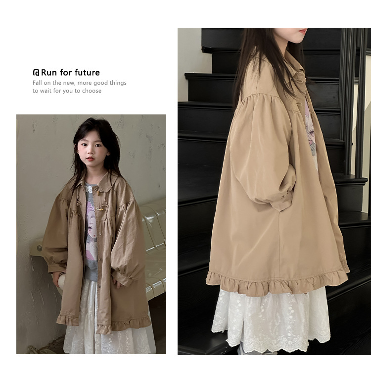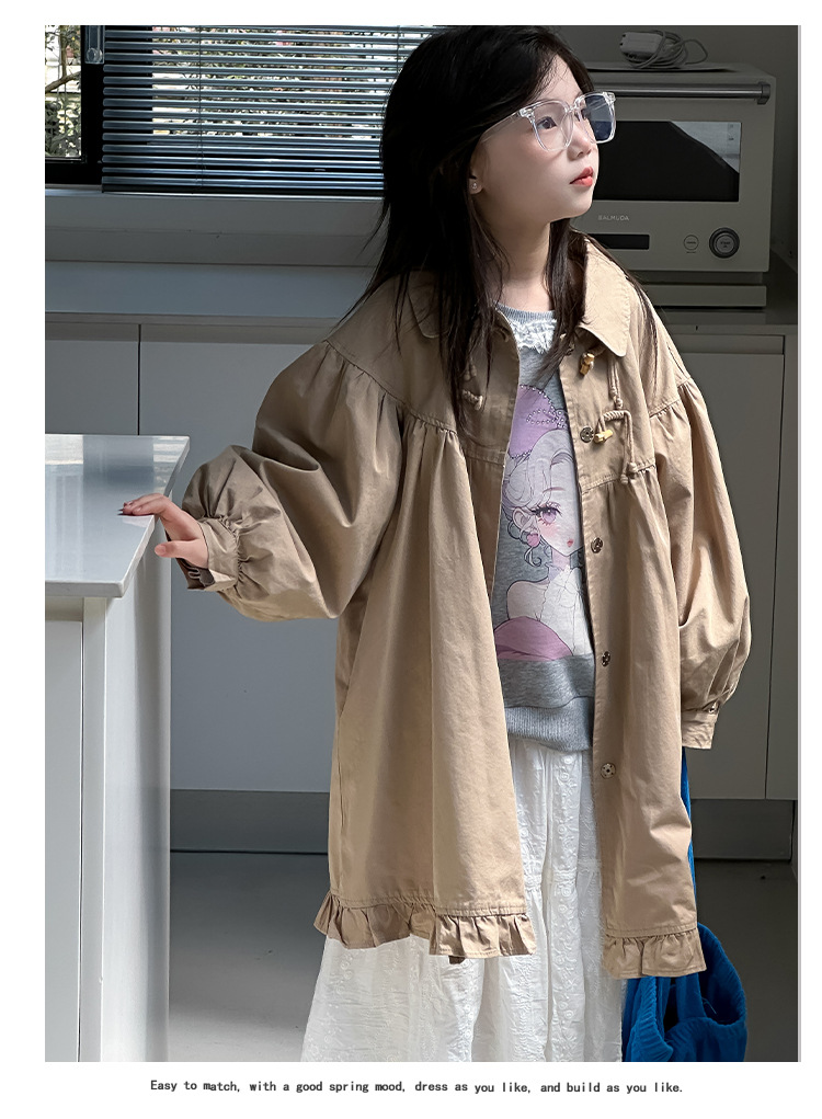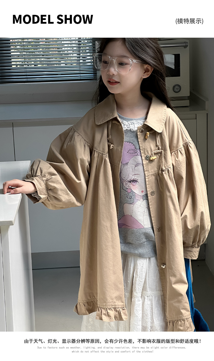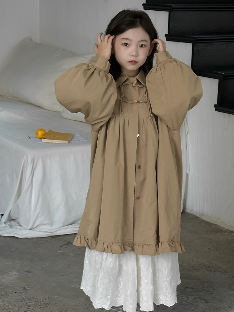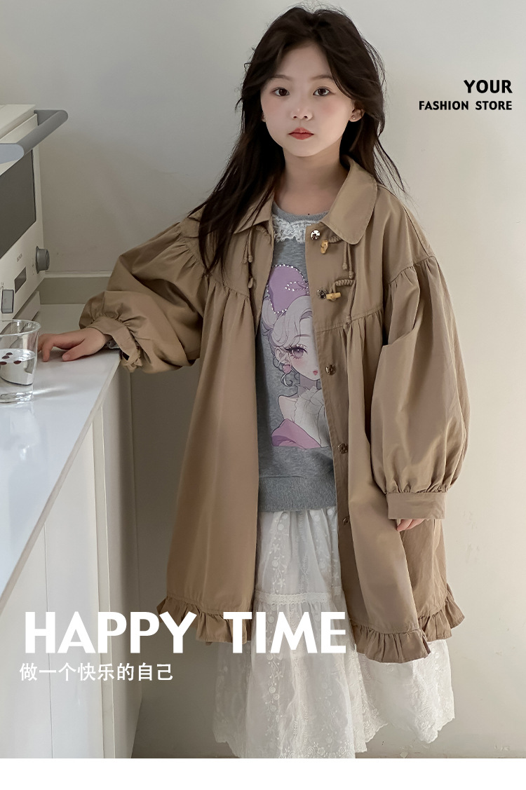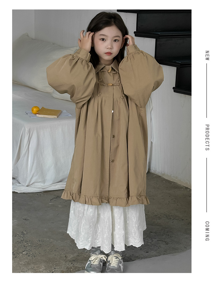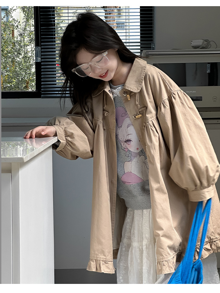 소녀 윈드 브레이커 코트 봄과 가을 새로운 한국 스타일 귀여운 공주 랜턴 소매 서양 스타일 중간 길이의 패셔너블 후주 질리스토어 가기