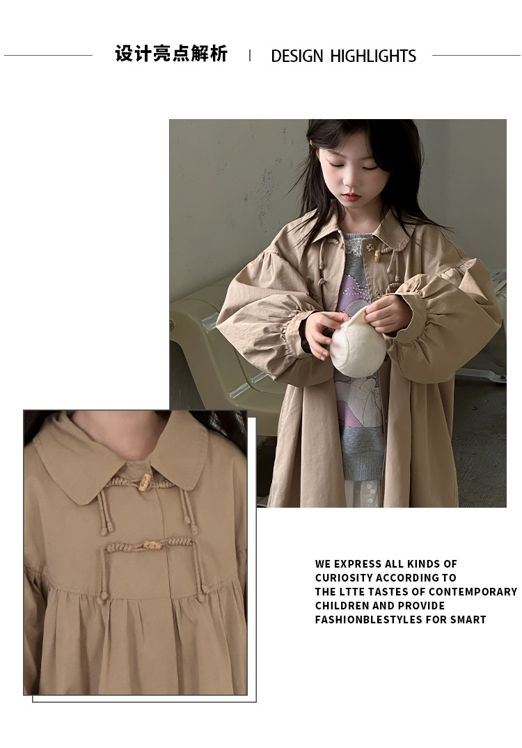 소녀 윈드 브레이커 코트 봄과 가을 새로운 한국 스타일 귀여운 공주 랜턴 소매 서양 스타일 중간 길이의 패셔너블 후주 질리