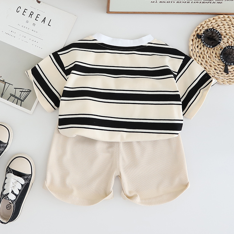 Yihao 아동 의류 소년 여름 정장 2025 스트라이프 캐주얼 반팔 아동 한국 스타일 투피스 아기 옷스토어 가기