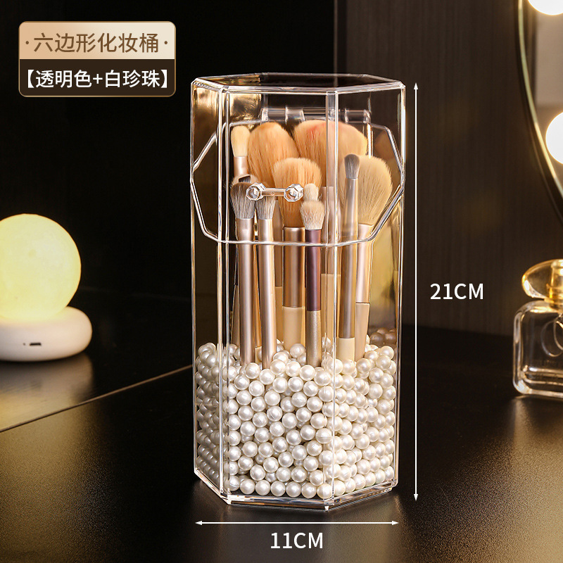 • 육각형 브러시 홀더 + 흰색 대형 진주