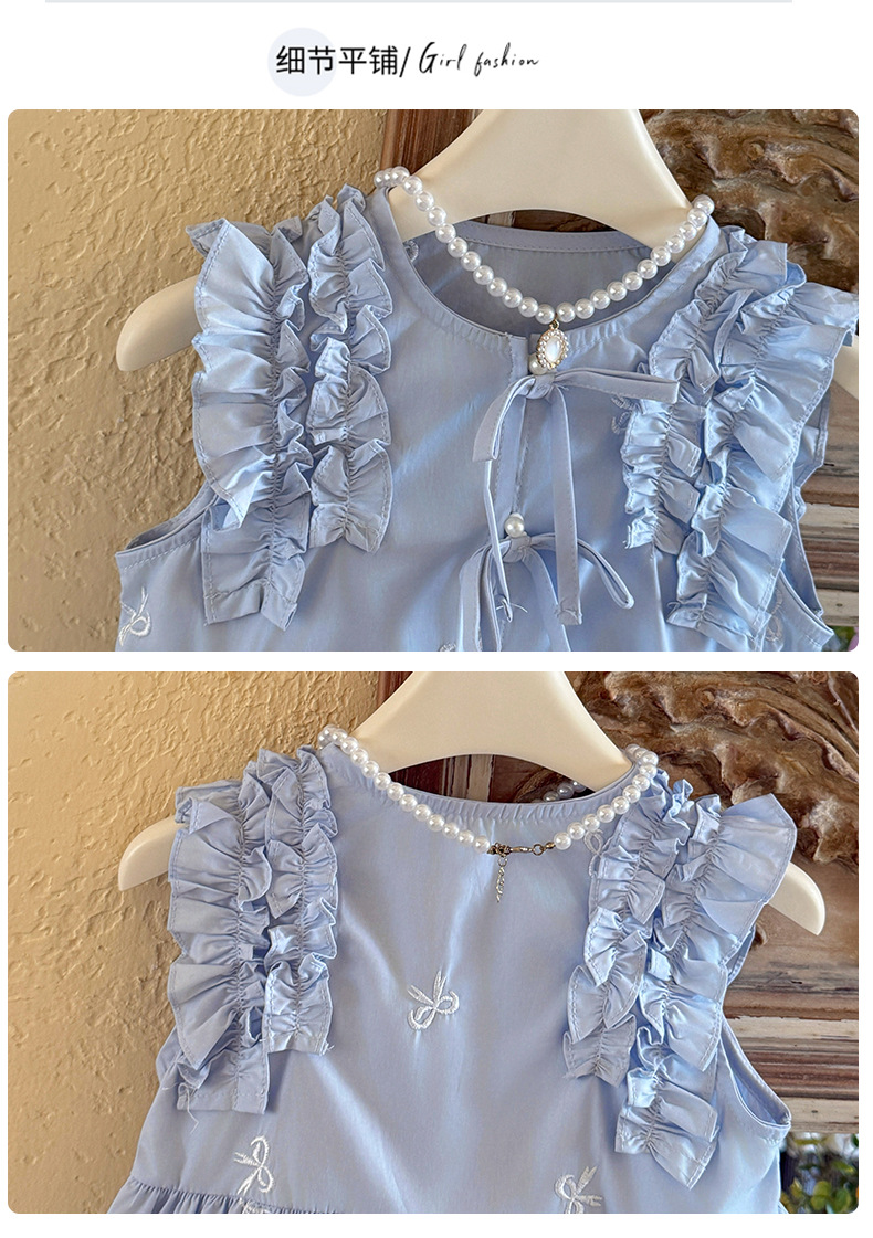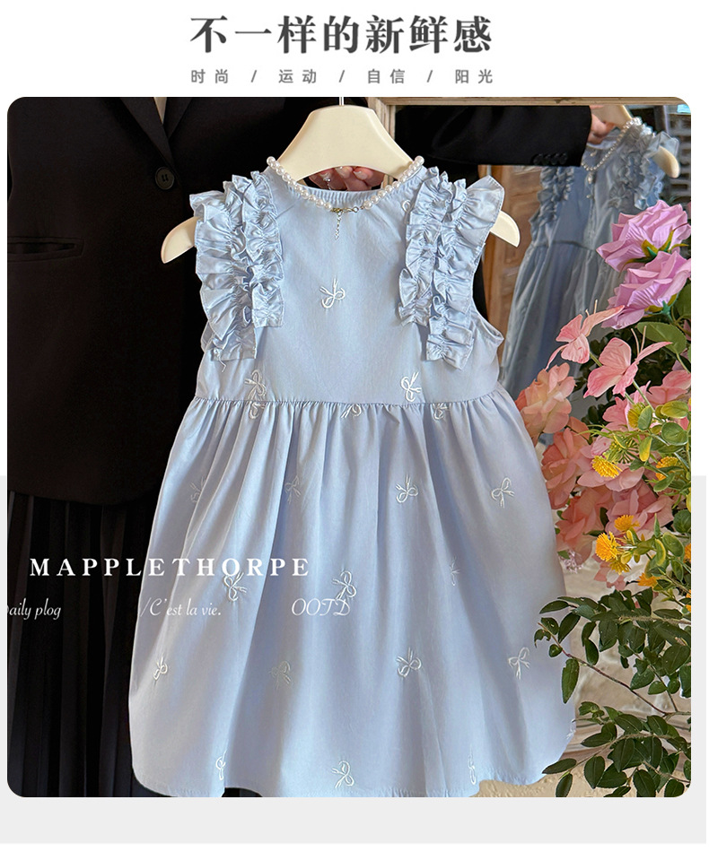 여름 레이디 소녀의 활 레이스 원피스 작은 비행 소매 달콤한 어린이 스커트 소녀의 조끼 공주 원피스